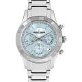 Женские часы-хронографХронографФункция позволяет измерять отрезки времени с особой точностью: часы, минуты, секунды. Верным признаком хронографа является наличие на циферблате 3 дополнительных окошек-счётчиков. c секундомеромСекундомерСекундоме́р — прибор, способный измерять интервалы времени с точностью до долей секунды. Jacques Lemans Venice 1-2151K, кварцевый механизм с высокой точностью. Минеральное стеклоМинеральное стеклоМинеральное стекло представляет собой искусственно выращенный минерал кварца. Такое стекло отличается особой устойчивостью к повреждениям и царапинам. Уступает по некоторым качествам сапфировому стеклу. устойчивое к мелким механическим повреждениям. Корпус из нержавеющей стали. Широкий безельБезельВнешний ободок, закрепляющий стекло. В спортивных часах так называется поворотное кольцо с делениями на циферблате, выполняет роль таймера – замеряет отрезки времени на шкале. Неподвижный безель – элемент декора. Однонаправленно вращающийся безель на дайверских часах позволяет фиксировать моменты погружения и выныривания на поверхность. с гранями. На циферблате расположены три дополнительных индикатора. Окошко даты находится в положении между 4 и 5 часов. Стрелки с люминесцентным покрытиемЛюминесцентное покрытиеПозволяет считывать показания времени в темноте. Производители наносят на стрелки, часовые индексы, безель или поверхность циферблата светонакопительный состав, дающий холодное свечение.. Каждая накладная риска украшена кристаллом Swarowski. Класс водозащиты: 50 метров, позволит защитить корпус от случайных брызг или капель дождя. Браслет из нержавеющей стали на раскладной застёжкеРаскладная застёжкаТакой тип застёжки используется только на браслетах из металла. Она никогда не раскрывается полностью, происходит разделение на 2 и более частей. Раскладывающая застёжка снизит вероятность потери часов к минимуму..