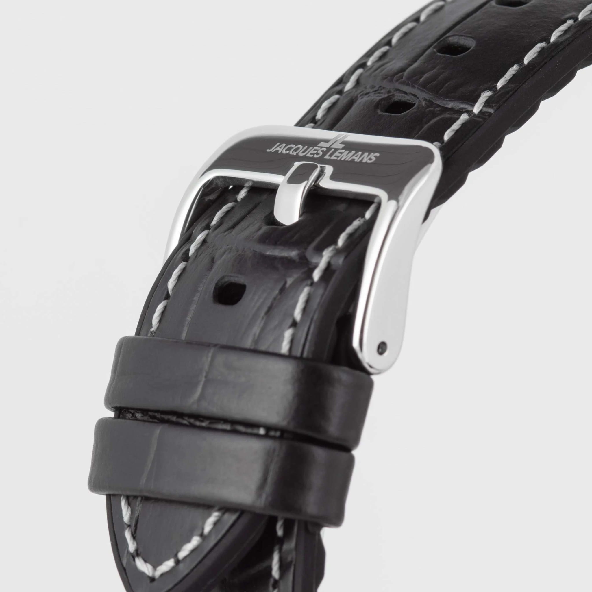 Мужские кварцевые часы-хронографХронографФункция позволяет измерять отрезки времени с особой точностью: часы, минуты, секунды. Верным признаком хронографа является наличие на циферблате 3 дополнительных окошек-счётчиков. с секундомеромСекундомерСекундоме́р — прибор, способный измерять интервалы времени с точностью до долей секунды. Jacques Lemans 1-2206C – лаконичная красота и изысканная элегантность. Оригинальная модель с классическим оформлением станет превосходным завершением образа, наделив его индивидуальным характером. Корпус выполнен из нержавеющей стали серебристого цвета, диаметром 44 мм, что обеспечивает долговечность и утончённый внешний вид. Минеральное стеклоМинеральное стеклоМинеральное стекло представляет собой искусственно выращенный минерал кварца. Такое стекло отличается особой устойчивостью к повреждениям и царапинам. Уступает по некоторым качествам сапфировому стеклу. повышенной прочности Crystex защищает циферблат от царапин. Поворотный безельБезельВнешний ободок, закрепляющий стекло. В спортивных часах так называется поворотное кольцо с делениями на циферблате, выполняет роль таймера – замеряет отрезки времени на шкале. Неподвижный безель – элемент декора. Однонаправленно вращающийся безель на дайверских часах позволяет фиксировать моменты погружения и выныривания на поверхность. с PVD-покрытиемPVDУльтратонкое покрытие наносится в технике вакуумного напыления, сочетает в себе нитрид титана особой прочности со слоем золота или оксида хрома. Несёт в себе декоративную или защитную функцию. черно-зеленого цвета. Ремешок состоит из двух частей: внутренняя сделана из силикона, внешняя — из натуральной кожи. Классическая застежка с логотипом бренда. Водозащита 200 метров позволит плавать, нырять и заниматься другими водными видами спорта. Стрелки и метки с люминесцентным покрытиемЛюминесцентное покрытиеПозволяет считывать показания времени в темноте. Производители наносят на стрелки, часовые индексы, безель или поверхность циферблата светонакопительный состав, дающий холодное свечение. позволяющие легко определять время даже в темноте. 12-ти и 24-х часовой формат времени. Окошко даты находится в положении между 4 и 5 часами. Рифленая заводная головка с защитой. Это аксессуар для мужчины, который ценит классический стиль и функциональность.