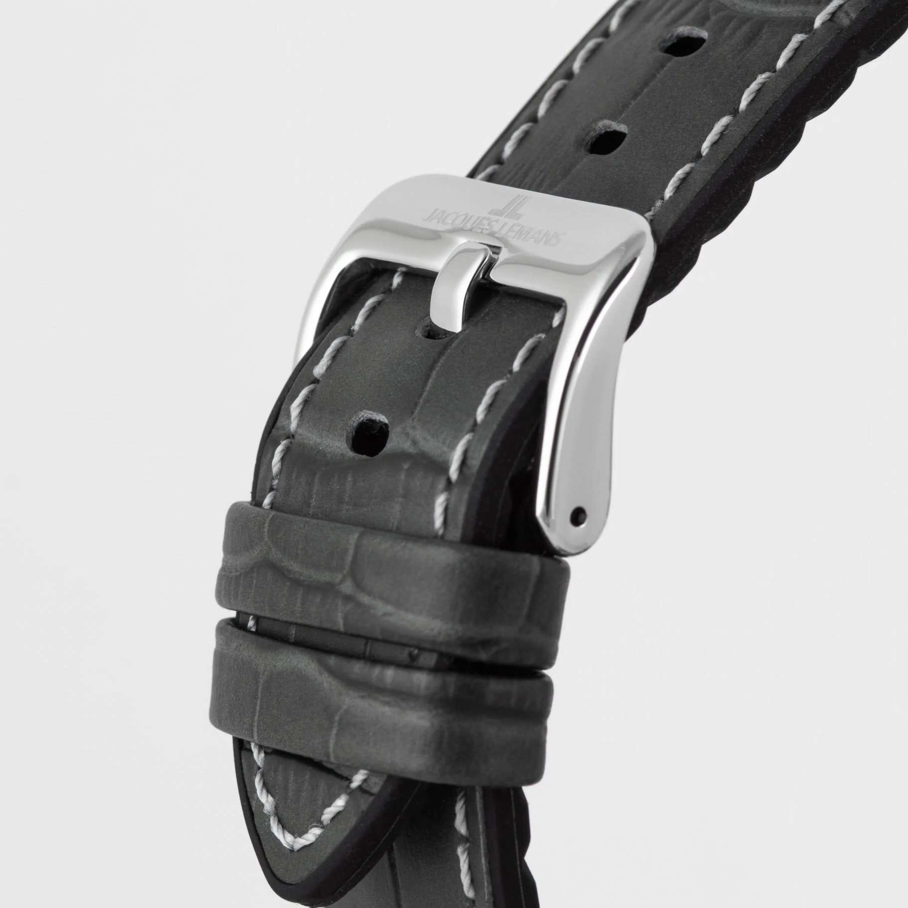 Мужские кварцевые часы-хронографХронографФункция позволяет измерять отрезки времени с особой точностью: часы, минуты, секунды. Верным признаком хронографа является наличие на циферблате 3 дополнительных окошек-счётчиков. с секундомеромСекундомерСекундоме́р — прибор, способный измерять интервалы времени с точностью до долей секунды. Jacques Lemans 1-2206E – лаконичная красота и изысканная элегантность. Оригинальная модель с классическим оформлением станет превосходным завершением образа, наделив его индивидуальным характером. Корпус выполнен из нержавеющей стали серебристого цвета, диаметром 44 мм, что обеспечивает долговечность и утончённый внешний вид. Минеральное стеклоМинеральное стеклоМинеральное стекло представляет собой искусственно выращенный минерал кварца. Такое стекло отличается особой устойчивостью к повреждениям и царапинам. Уступает по некоторым качествам сапфировому стеклу. повышенной прочности Crystex защищает циферблат от царапин. Поворотный безельБезельВнешний ободок, закрепляющий стекло. В спортивных часах так называется поворотное кольцо с делениями на циферблате, выполняет роль таймера – замеряет отрезки времени на шкале. Неподвижный безель – элемент декора. Однонаправленно вращающийся безель на дайверских часах позволяет фиксировать моменты погружения и выныривания на поверхность. с PVD-покрытиемPVDУльтратонкое покрытие наносится в технике вакуумного напыления, сочетает в себе нитрид титана особой прочности со слоем золота или оксида хрома. Несёт в себе декоративную или защитную функцию.. Ремешок состоит из двух частей: внутренняя сделана из силикона, внешняя — из натуральной кожи. Классическая застежка с логотипом бренда. Водозащита 200 метров позволит плавать, нырять и заниматься другими водными видами спорта. Стрелки и метки с люминесцентным покрытиемЛюминесцентное покрытиеПозволяет считывать показания времени в темноте. Производители наносят на стрелки, часовые индексы, безель или поверхность циферблата светонакопительный состав, дающий холодное свечение. позволяющие легко определять время даже в темноте. 12-ти и 24-х часовой формат времени. Окошко даты находится в положении между 4 и 5 часами. Рифленая заводная головка с защитой. Это аксессуар для мужчины, который ценит классический стиль и функциональность.