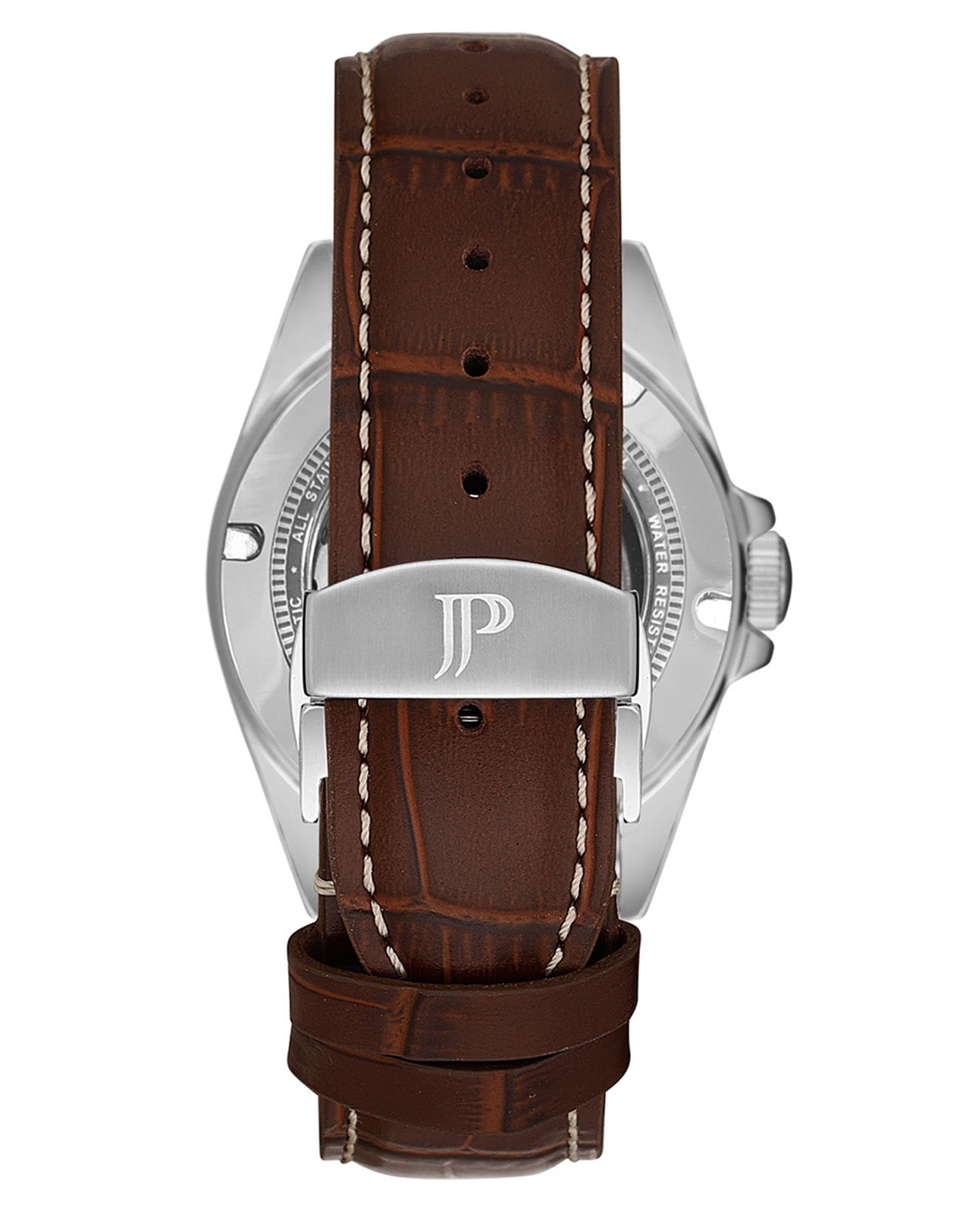 Швейцарские механические мужские часы с автоподзаводом Jacques Philippe Victus JPAGS551123. Сапфировое стеклоСапфировое стеклоПрочный и надёжный материал из кристалла сапфира синтетического происхождения, характеризующийся особой твёрдостью и устойчивостью к царапинам и повреждениям. устойчивое к появлению царапин, обладающее высокой прозрачностью. Корпус часов изготовлен из нержавеющей стали. Метки с люминесцентным покрытиемЛюминесцентное покрытиеПозволяет считывать показания времени в темноте. Производители наносят на стрелки, часовые индексы, безель или поверхность циферблата светонакопительный состав, дающий холодное свечение.. Окошко даты находится в положении 6 часов. Класс водозащиты: 100 метров, позволит плавать, нырять и заниматься другими водными видами спорта. Кожаный ремешок с классической застежкой.