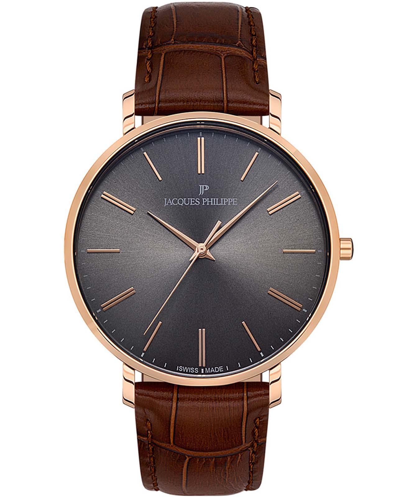 Швейцарские мужские часы Jacques Philippe Base JPQGS073143, кварцевый механизм с высокой точностью. Сапфировое стеклоСапфировое стеклоПрочный и надёжный материал из кристалла сапфира синтетического происхождения, характеризующийся особой твёрдостью и устойчивостью к царапинам и повреждениям. устойчивое к появлению царапин, обладающее высокой прозрачностью. Корпус часов изготовлен из нержавеющей стали с IP-покрытиемIP-покрытиеМетод ионного напыления. Демонстрирует повышенную устойчивость к истиранию, окислению и химическим веществам. Под воздействием высокого давления и температуры около 1500°C молекулы металла надёжно соединяются с частицами корпуса часов.. Класс водозащиты: 30 метров, позволит защитить корпус от случайных брызг или капель дождя. Кожаный ремешок на стандартной застёжке.
