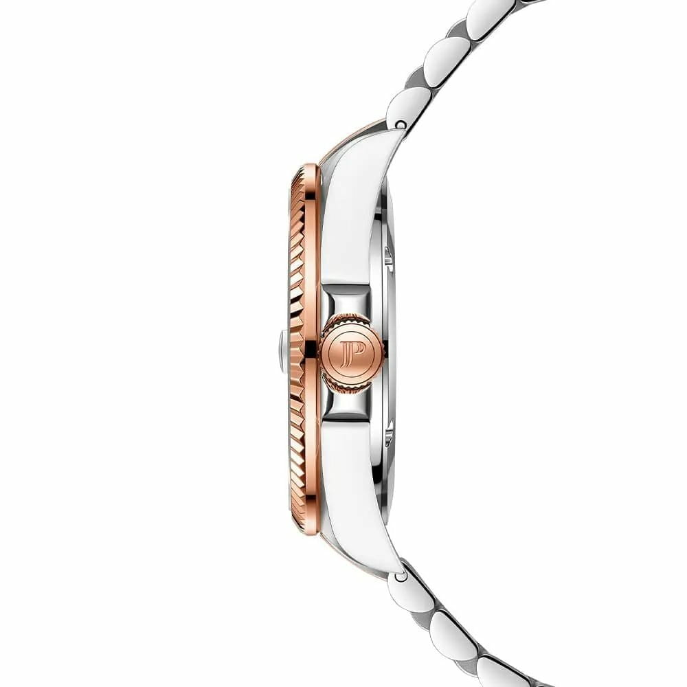 Jacques Philippe JPQGS597328V2 — мужские часы в сдержанном классическом исполнении с акцентом на простоту и надёжность. Корпус диаметром 40 мм выполнен из нержавеющей стали, а его умеренная толщина — около 12 мм — делает модель универсальной и комфортной в повседневной носке. БезельБезельВнешний ободок, закрепляющий стекло. В спортивных часах так называется поворотное кольцо с делениями на циферблате, выполняет роль таймера – замеряет отрезки времени на шкале. Неподвижный безель – элемент декора. Однонаправленно вращающийся безель на дайверских часах позволяет фиксировать моменты погружения и выныривания на поверхность. с PVD-покрытиемPVDУльтратонкое покрытие наносится в технике вакуумного напыления, сочетает в себе нитрид титана особой прочности со слоем золота или оксида хрома. Несёт в себе декоративную или защитную функцию.. Циферблат оформлен в светлом металлическом тоне с тонкими стрелками, лаконичными часовыми метками и аккуратным окошком даты в позиции «3 часа». Минималистичный стиль подчёркивает строгость и чистоту дизайна. Поверхность защищена устойчивым к царапинам сапфировым стекломСапфировое стеклоПрочный и надёжный материал из кристалла сапфира синтетического происхождения, характеризующийся особой твёрдостью и устойчивостью к царапинам и повреждениям., которое обеспечивает хорошую читаемость и долговечность. Механизм — точный швейцарский кварц, не требующий подзавода. Он обеспечивает стабильную и бесперебойную работу часов, сохраняя точность в любых условиях. Браслет из нержавеющей стали с PVD-покрытиемPVDУльтратонкое покрытие наносится в технике вакуумного напыления, сочетает в себе нитрид титана особой прочности со слоем золота или оксида хрома. Несёт в себе декоративную или защитную функцию. визуально продолжает корпус и фиксируется с помощью надёжной застёжки, обеспечивая комфортную посадку. Ширина браслета — 22 мм. Водозащита до 10 ATM позволяет использовать часы не только в повседневной жизни, но и при активности на воде. Jacques Philippe — это надёжная и универсальная модель для тех, кто ценит швейцарскую точность, простоту и уверенный стиль без лишних деталей.