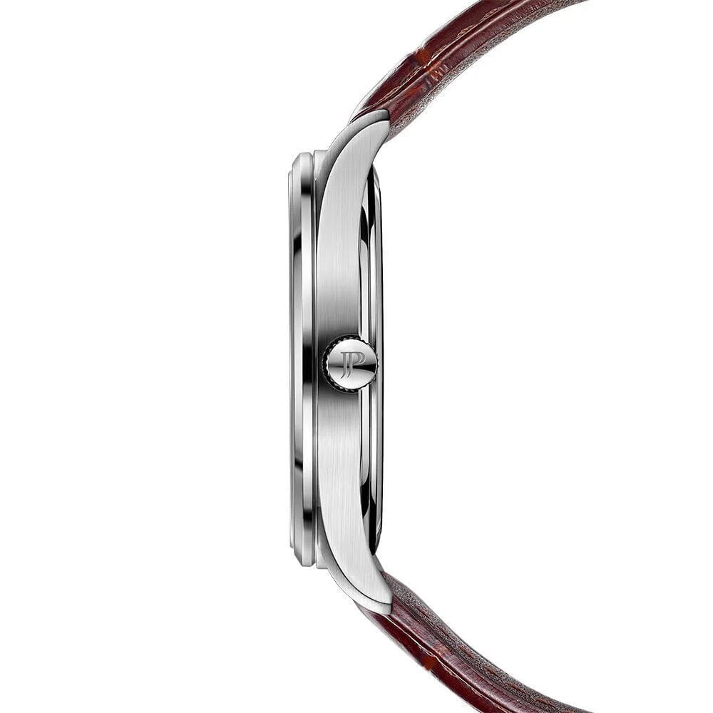 Jacques Philippe JPQGS621123 — утончённая мужская модель, сочетающая строгость классической формы и практичную надёжность. Корпус диаметром 40 мм выполнен из нержавеющей стали и отличается тонким профилем — всего около 9 мм, что обеспечивает лёгкость и комфорт при повседневной носке.
