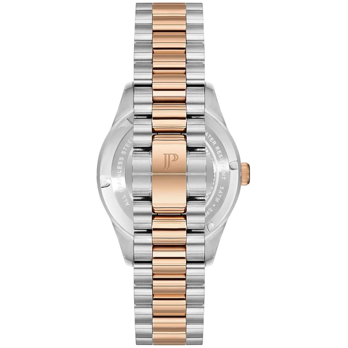 Часы Jacques Philippe JPQLS2473X8N — элегантные женские часы, сочетающие швейцарское качество и современный дизайн. Корпус диаметром 36 мм выполнен из нержавеющей стали, а серебристый циферблат защищён сапфировым стекломСапфировое стеклоПрочный и надёжный материал из кристалла сапфира синтетического происхождения, характеризующийся особой твёрдостью и устойчивостью к царапинам и повреждениям.. БезельБезельВнешний ободок, закрепляющий стекло. В спортивных часах так называется поворотное кольцо с делениями на циферблате, выполняет роль таймера – замеряет отрезки времени на шкале. Неподвижный безель – элемент декора. Однонаправленно вращающийся безель на дайверских часах позволяет фиксировать моменты погружения и выныривания на поверхность. с PVD-покрытиемPVDУльтратонкое покрытие наносится в технике вакуумного напыления, сочетает в себе нитрид титана особой прочности со слоем золота или оксида хрома. Несёт в себе декоративную или защитную функцию..