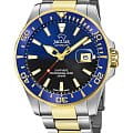 Мужские швейцарские часы Jaguar Automatic Diver J887/3. Автоматический швейцарский калибр ETA 2824-2. Сапфировое стеклоСапфировое стеклоПрочный и надёжный материал из кристалла сапфира синтетического происхождения, характеризующийся особой твёрдостью и устойчивостью к царапинам и повреждениям. устойчивое к мелким механическим повреждениям. Корпус часов изготовлен из нержавеющей стали. Стрелки и метки с люминесцентным покрытиемЛюминесцентное покрытиеПозволяет считывать показания времени в темноте. Производители наносят на стрелки, часовые индексы, безель или поверхность циферблата светонакопительный состав, дающий холодное свечение.. Окошко даты находится в положении 3 часа. Класс водозащиты: 200 метров, позволит плавать, нырять и заниматься другими водными видами спорта. Стальной браслет с частичным PVD-покрытиемPVDУльтратонкое покрытие наносится в технике вакуумного напыления, сочетает в себе нитрид титана особой прочности со слоем золота или оксида хрома. Несёт в себе декоративную или защитную функцию. на раскладной застёжкеРаскладная застёжкаТакой тип застёжки используется только на браслетах из металла. Она никогда не раскрывается полностью, происходит разделение на 2 и более частей. Раскладывающая застёжка снизит вероятность потери часов к минимуму.. БезельБезельВнешний ободок, закрепляющий стекло. В спортивных часах так называется поворотное кольцо с делениями на циферблате, выполняет роль таймера – замеряет отрезки времени на шкале. Неподвижный безель – элемент декора. Однонаправленно вращающийся безель на дайверских часах позволяет фиксировать моменты погружения и выныривания на поверхность. с PVD-покрытиемPVDУльтратонкое покрытие наносится в технике вакуумного напыления, сочетает в себе нитрид титана особой прочности со слоем золота или оксида хрома. Несёт в себе декоративную или защитную функцию..