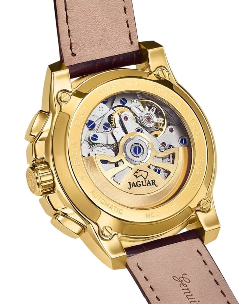 Jaguar Le Chronographe J976/1  — это мужские часы, сочетающие классический дизайн с современными функциями. Корпус диаметром 45 мм выполнен из нержавеющей стали с PVD-покрытиемPVDУльтратонкое покрытие наносится в технике вакуумного напыления, сочетает в себе нитрид титана особой прочности со слоем золота или оксида хрома. Несёт в себе декоративную или защитную функцию., что обеспечивает прочность и элегантный внешний вид. Сапфировое стеклоСапфировое стеклоПрочный и надёжный материал из кристалла сапфира синтетического происхождения, характеризующийся особой твёрдостью и устойчивостью к царапинам и повреждениям. защищает циферблат от царапин и повреждений. Изысканный циферблат со стильными индексами и стрелками подчёркивает утончённый стиль. Часы с хронографом. Часы оснащены стильным кожаным ремешком и классической застежкой, идеальной системой крепления для кожаного ремешка, которая гарантирует, что часы будут надежно оставаться на месте в любое время. Водозащита до 10 ATM (100 метров) делает часы подходящими для плавания и занятий водными видами спорта. Jaguar J976/1 — идеальный выбор для мужчин, которые ценят швейцарское качество и современные технологии.