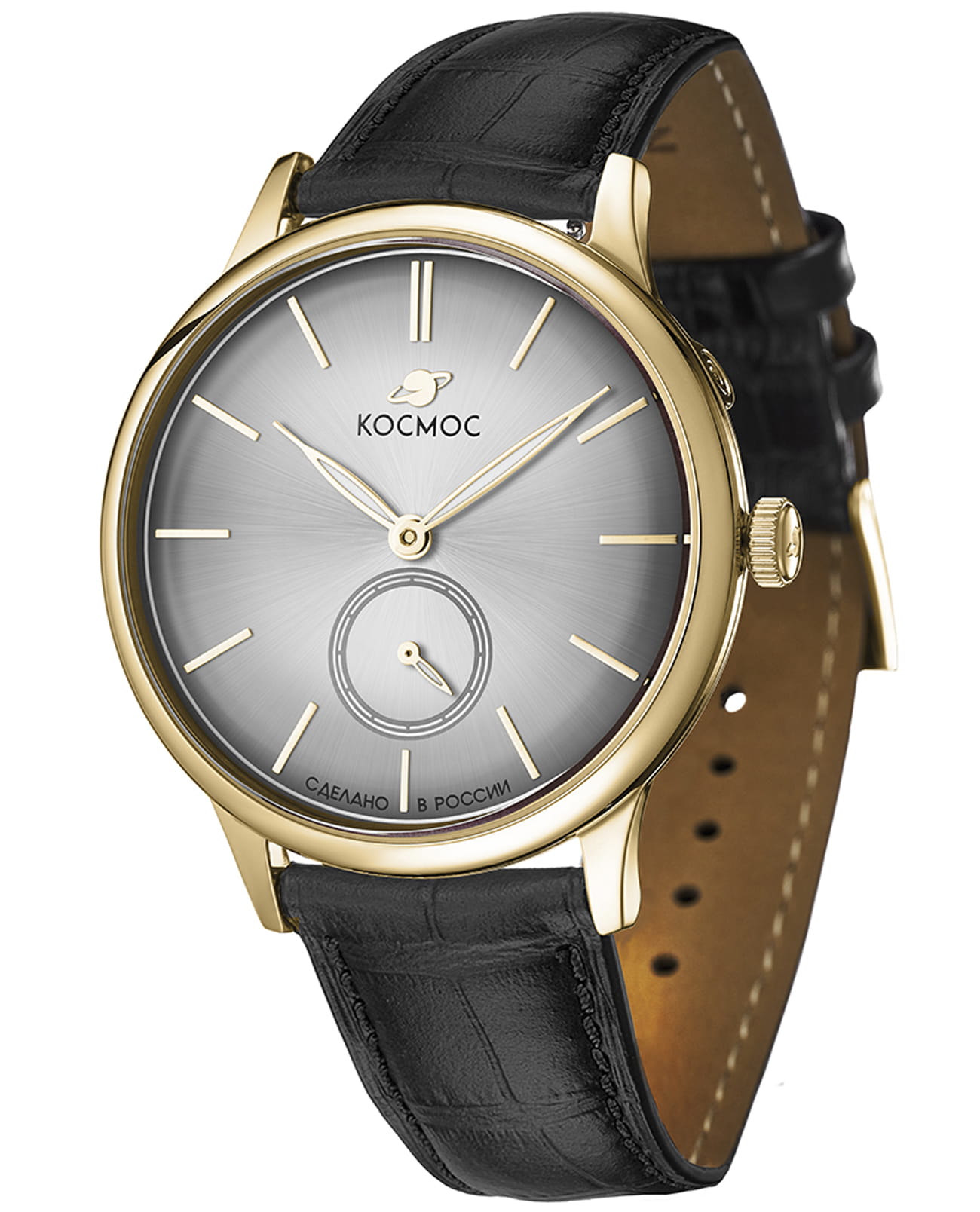 Мужские наручные часы Космос Сириус K 021.21.33 — это сочетание традиций часового искусства 60-70-х годов и футуристического дизайна, вдохновленного космическими исследованиями. Они не только служат напоминанием о прошлом, но и побуждают задуматься о будущем, позволяя наслаждаться качеством и смыслом, вложенными в каждую деталь. Полированный корпус часов выполнен в виде силуэта летающей тарелки благодаря выпуклым формам стекла и нижней части корпуса. Стальные ушки, которые напоминают опоры летающей тарелки, завершает общий образ. На задней крышке часов выгравирован фантазийный сюжет – космическая станция будущего. Серый циферблат в ретро-стиле с выгнутыми краями требует сложной технологии производства, что делает их аналогами часов прошлых эпох. Кончик секундной стрелки изогнут так, чтобы гармонировать с формой циферблата. Выпуклый градиентный циферблат украшен шлифовкой, напоминающей солнечные лучи, и ручными индексами, надежно закрепленными на двух штифтах. Специальное люминесцентное покрытиеЛюминесцентное покрытиеПозволяет считывать показания времени в темноте. Производители наносят на стрелки, часовые индексы, безель или поверхность циферблата светонакопительный состав, дающий холодное свечение. нанесено на часовую, минутную и секундную стрелки, а также на пунктирные метки и окантовку циферблата, создавая эффект светящегося изображения в темноте. Форма минерального стеклаМинеральное стеклоМинеральное стекло представляет собой искусственно выращенный минерал кварца. Такое стекло отличается особой устойчивостью к повреждениям и царапинам. Уступает по некоторым качествам сапфировому стеклу. также тщательно продумана — оно изогнуто как снаружи, так и изнутри. Эта конструкция предотвращает искажение изображения на циферблате, в отличие от традиционных стекол с прямой внутренней частью, которые могут создавать оптические искажения. Часы комплектуются кожаным браслетом черного цвета с прошивкой. Корпус изготовлен из гипоаллергенной стали с IP-покрытиемIP-покрытиеМетод ионного напыления. Демонстрирует повышенную устойчивость к истиранию, окислению и химическим веществам. Под воздействием высокого давления и температуры около 1500°C молекулы металла надёжно соединяются с частицами корпуса часов., что обеспечивает комфорт при ношении. Заводная головка, застежка и ремешок украшены фирменным логотипом, подчеркивающим индивидуальность данной модели.