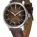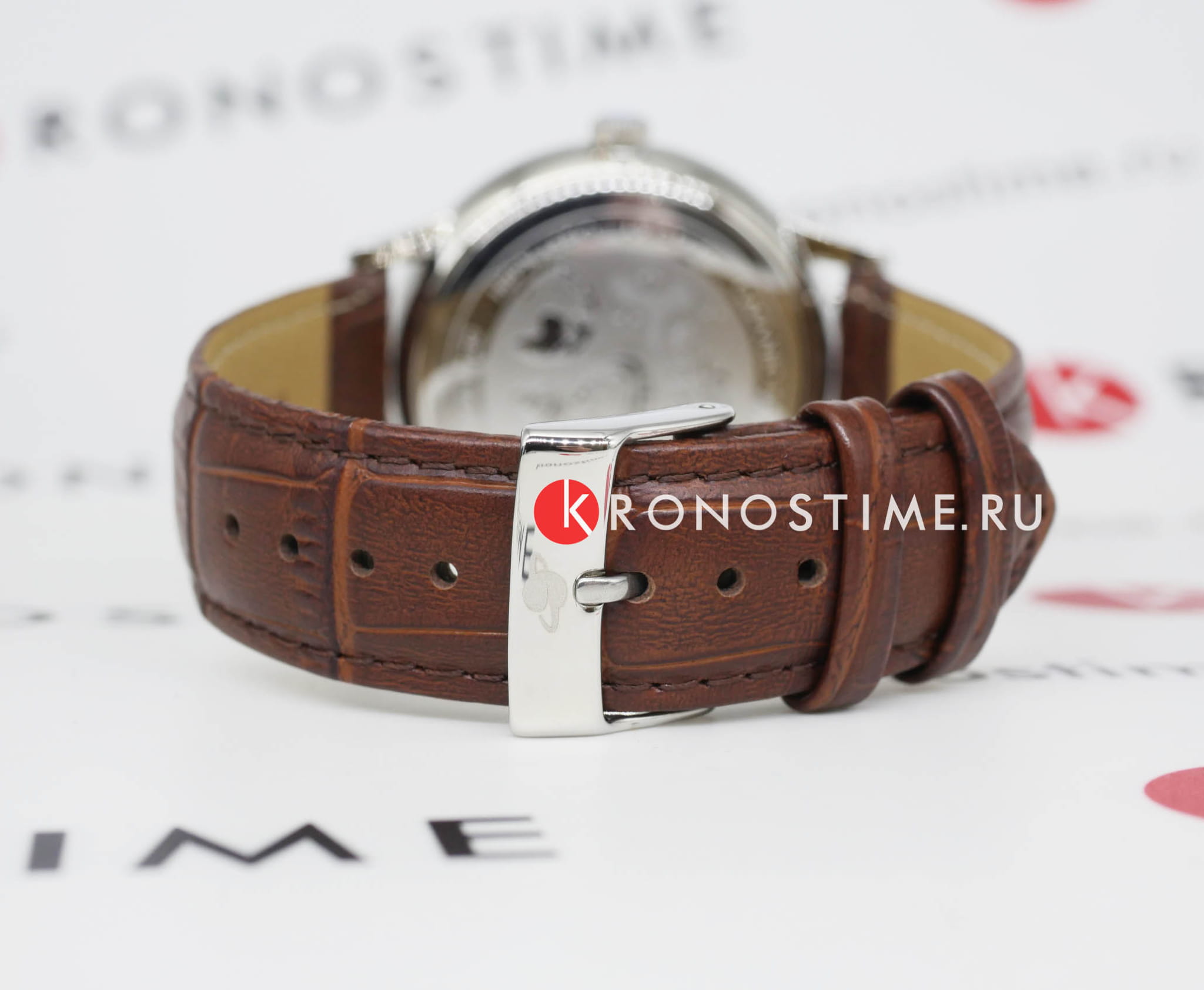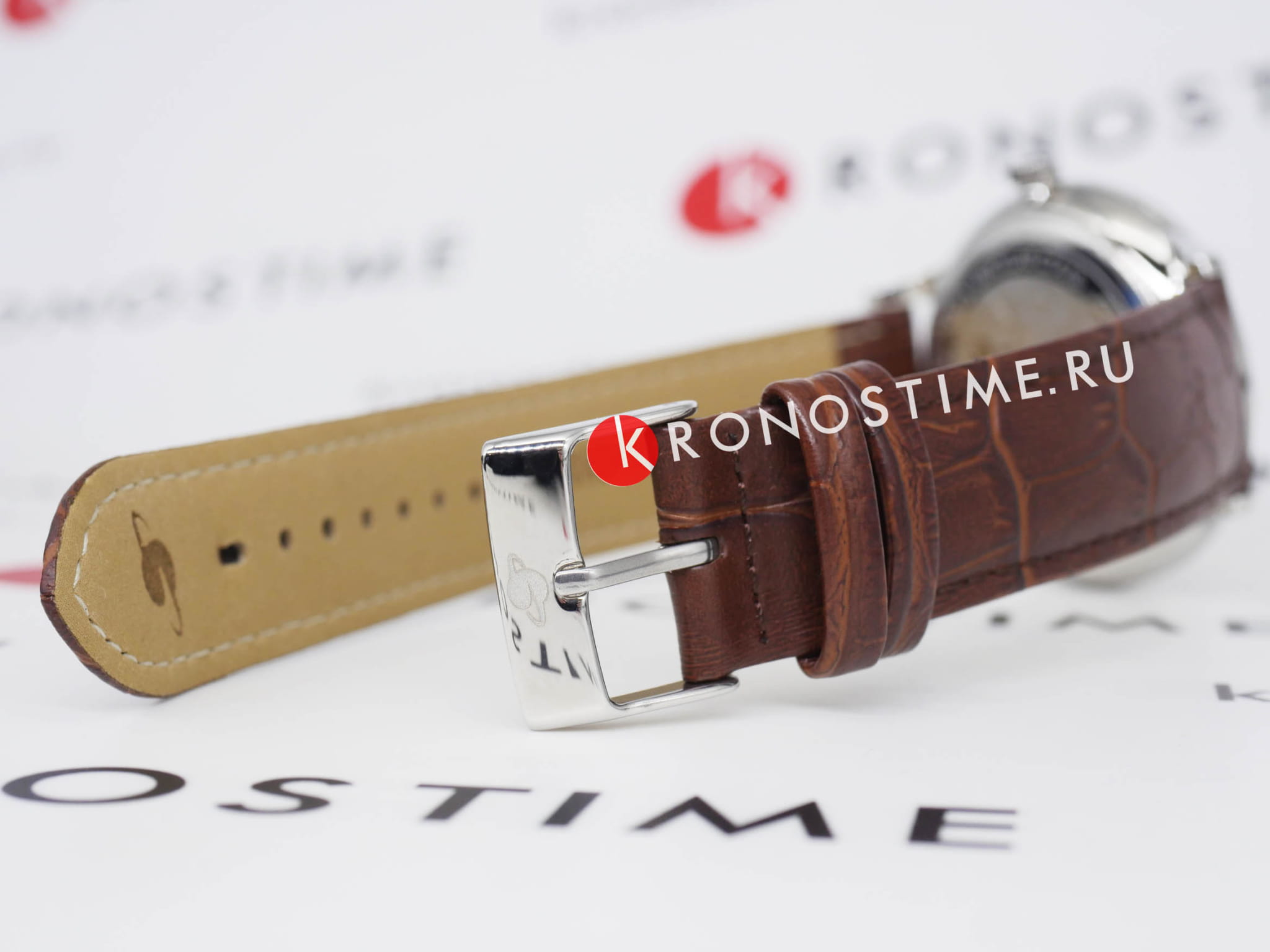 Мужские наручные часы Космос Космопорт K 058.12.32 — это сочетание традиций часового искусства 60-70-х годов и футуристического дизайна, вдохновленного космическими исследованиями. Они не только служат напоминанием о прошлом, но и побуждают задуматься о будущем, позволяя наслаждаться качеством и смыслом, вложенными в каждую деталь. Полированный корпус часов выполнен в виде силуэта летающей тарелки благодаря выпуклым формам стекла и нижней части корпуса. Стальные ушки, которые напоминают опоры летающей тарелки, завершает общий образ. На задней крышке часов выгравирован фантазийный сюжет – космическая станция будущего. Циферблат коричневого цвета выполнен в ретро стиле с закруглёнными краями, что требует применения сложной технологии производства, характерной для часов прошлых лет. Кончик секундной стрелки повторяет эту форму, а на выпуклом градиентном циферблате выполнена шлифовка, напоминающая солнечные лучи. Индексы, изготовленные вручную и закрепленные на двух штифтах, добавляют изысканности. Также присутствуют ретроградные индикаторы даты и второго времени (24 часа), которые возвращаются в исходное положение одним движением.  Люминесцентное покрытиеЛюминесцентное покрытиеПозволяет считывать показания времени в темноте. Производители наносят на стрелки, часовые индексы, безель или поверхность циферблата светонакопительный состав, дающий холодное свечение. на часовой и минутной стрелках, а также на стрелках ретроградных индикаторов и окантовке циферблата создает эффект светящегося ореола в темноте. Форма минерального стеклаМинеральное стеклоМинеральное стекло представляет собой искусственно выращенный минерал кварца. Такое стекло отличается особой устойчивостью к повреждениям и царапинам. Уступает по некоторым качествам сапфировому стеклу., представляющего собой двояковыпуклую конструкцию, тщательно проработана. Такое стекло не искажает изображение на циферблате, потому что внутренняя поверхность остаётся плоской, создавая эффект линзы. Производственный процесс для достижения двух параллельно изогнутых поверхностей очень сложен, и требуется высокая точность, чтобы избежать повреждения стекла. Ремешок из коричневой натуральной кожи оснащён креплениями, которые позволяют легко снимать и надевать его без использования дополнительных инструментов. Заводная головка, застежка и ремешок украшены фирменным логотипом, что подчеркивает индивидуальность и стиль этих часов.