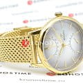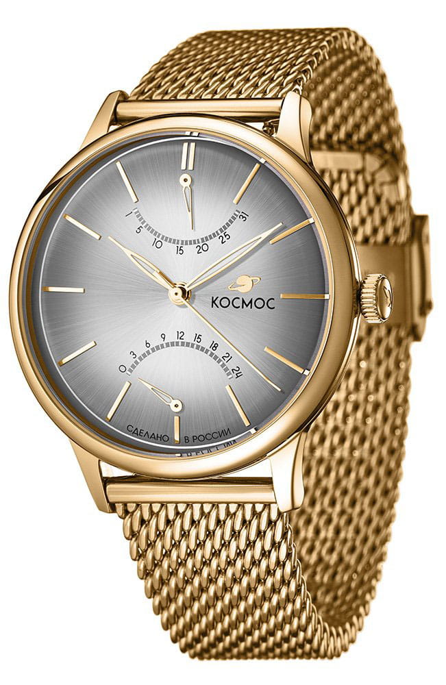 Мужские наручные часы Космос Космопорт K 058.20.33 — это сочетание традиций часового искусства 60-70-х годов и футуристического дизайна, вдохновленного космическими исследованиями. Они не только служат напоминанием о прошлом, но и побуждают задуматься о будущем, позволяя наслаждаться качеством и смыслом, вложенными в каждую деталь. Полированный корпус часов выполнен в виде силуэта летающей тарелки благодаря выпуклым формам стекла и нижней части корпуса. Стальные ушки, которые напоминают опоры летающей тарелки, завершает общий образ. На задней крышке часов выгравирован фантазийный сюжет – космическая станция будущего. Циферблат светло-серого цвета выполнен в ретро стиле с закруглёнными краями, что требует применения сложной технологии производства, характерной для часов прошлых лет. Кончик секундной стрелки повторяет эту форму, а на выпуклом градиентном циферблате выполнена шлифовка, напоминающая солнечные лучи. Индексы, изготовленные вручную и закрепленные на двух штифтах, добавляют изысканности. Также присутствуют ретроградные индикаторы даты и второго времени (24 часа), которые возвращаются в исходное положение одним движением. Люминесцентное покрытиеЛюминесцентное покрытиеПозволяет считывать показания времени в темноте. Производители наносят на стрелки, часовые индексы, безель или поверхность циферблата светонакопительный состав, дающий холодное свечение. на часовой и минутной стрелках, а также на стрелках ретроградных индикаторов и окантовке циферблата создает эффект светящегося ореола в темноте. Форма минерального стеклаМинеральное стеклоМинеральное стекло представляет собой искусственно выращенный минерал кварца. Такое стекло отличается особой устойчивостью к повреждениям и царапинам. Уступает по некоторым качествам сапфировому стеклу., представляющего собой двояковыпуклую конструкцию, тщательно проработана. Такое стекло не искажает изображение на циферблате, потому что внутренняя поверхность остаётся плоской, создавая эффект линзы. Производственный процесс для достижения двух параллельно изогнутых поверхностей очень сложен, и требуется высокая точность, чтобы избежать повреждения стекла. Часы комплектуются стальным браслетом миланского плетения, который дополнительно защищает от случайного падения. Корпус и браслет часов изготовлены из гипоаллергенной стали с IP-покрытиемIP-покрытиеМетод ионного напыления. Демонстрирует повышенную устойчивость к истиранию, окислению и химическим веществам. Под воздействием высокого давления и температуры около 1500°C молекулы металла надёжно соединяются с частицами корпуса часов., что обеспечивает комфорт при ношении. Заводная головка, застежка и ремешок украшены фирменным логотипом, подчеркивающим индивидуальность данной модели.