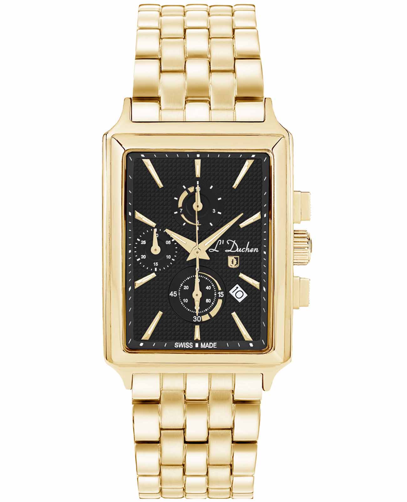 Мужские швейцарские часы- хронографХронографФункция позволяет измерять отрезки времени с особой точностью: часы, минуты, секунды. Верным признаком хронографа является наличие на циферблате 3 дополнительных окошек-счётчиков. L'Duchen Adventure Chrono D 612.20.31, кварцевый механизм с высокой точностью. Сапфировое стеклоСапфировое стеклоПрочный и надёжный материал из кристалла сапфира синтетического происхождения, характеризующийся особой твёрдостью и устойчивостью к царапинам и повреждениям. устойчивое к появлению царапин, обладающее высокой прозрачностью. Корпус часов выполнен из нержавеющей стали с PVD-покрытиемPVDУльтратонкое покрытие наносится в технике вакуумного напыления, сочетает в себе нитрид титана особой прочности со слоем золота или оксида хрома. Несёт в себе декоративную или защитную функцию.. Стрелки с люминесцентным покрытиемЛюминесцентное покрытиеПозволяет считывать показания времени в темноте. Производители наносят на стрелки, часовые индексы, безель или поверхность циферблата светонакопительный состав, дающий холодное свечение.. Окошко даты находится в положении между 4 и 5 часами. Класс водозащиты: 50 метров, позволит защитить корпус от случайных брызг или капель дождя. Стальной браслет с PVD-покрытиемPVDУльтратонкое покрытие наносится в технике вакуумного напыления, сочетает в себе нитрид титана особой прочности со слоем золота или оксида хрома. Несёт в себе декоративную или защитную функцию. на застёжке «бабочка» с кнопкамиЗастёжка "бабочка"Такой вид застёжки дополняется предохранителями, помогающими избежать случайного раскрытия браслета. Обладают изящным исполнением. .