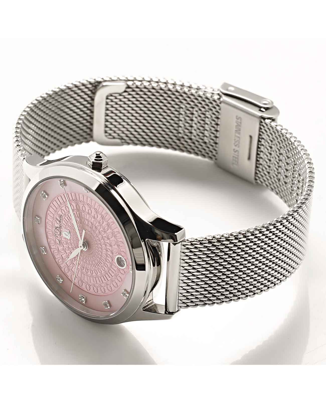 Женские швейцарские часы L'Duchen Grace D 791.17.39 M, кварцевый механизм с высокой точностью. Сапфировое стеклоСапфировое стеклоПрочный и надёжный материал из кристалла сапфира синтетического происхождения, характеризующийся особой твёрдостью и устойчивостью к царапинам и повреждениям. устойчивое к появлению царапин, обладающее высокой прозрачностью. Корпус часов выполнен из нержавеющей стали. Окошко даты находится в положении 6 часов. Класс водозащиты: 50 метров, позволит защитить корпус от случайных брызг или капель дождя. Стальной браслет миланского плетения на раскладном замкеРаскладной замокДанный вариант застежки используется только на часах с металлическим браслетом. Отличительная особенность такого крепления в том, что длина браслета становится универсальной и вы можете самостоятельно отрегулировать нужный вам размер – застежка просто двигается по браслету часов..