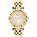Женские наручные часы Lee Cooper LC07411.110 — это элегантная модель с утончённым дизайном. Корпус диаметром 34 мм выполнен из суперметалла с IP-покрытиемIP-покрытиеМетод ионного напыления. Демонстрирует повышенную устойчивость к истиранию, окислению и химическим веществам. Под воздействием высокого давления и температуры около 1500°C молекулы металла надёжно соединяются с частицами корпуса часов., что придаёт часам изысканный вид. Золотистый циферблат украшен изящными вставками из кристаллов и стрелками, обеспечивая удобное считывание времени. Циферблат защищён минеральным стекломМинеральное стеклоМинеральное стекло представляет собой искусственно выращенный минерал кварца. Такое стекло отличается особой устойчивостью к повреждениям и царапинам. Уступает по некоторым качествам сапфировому стеклу., устойчивым к царапинам. Часы работают на кварцевом механизме, обеспечивая точность хода. Браслет из нержавеющей стали с раскладной застёжкойРаскладная застёжкаТакой тип застёжки используется только на браслетах из металла. Она никогда не раскрывается полностью, происходит разделение на 2 и более частей. Раскладывающая застёжка снизит вероятность потери часов к минимуму. гарантирует комфортное ношение и надёжную фиксацию на запястье. Водозащита 30 метров защищает часы от случайных брызг и дождя, делая их подходящими для повседневного использования.