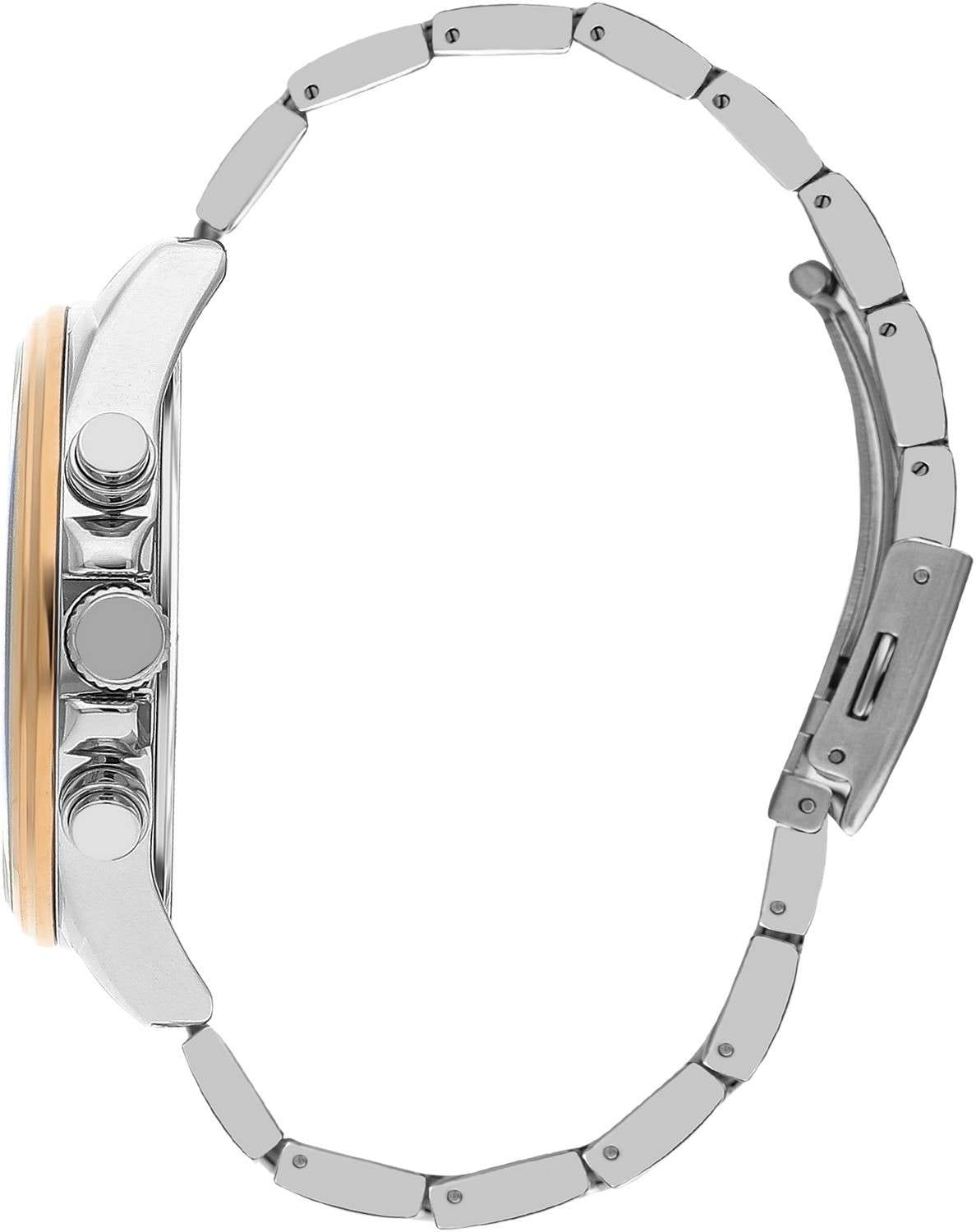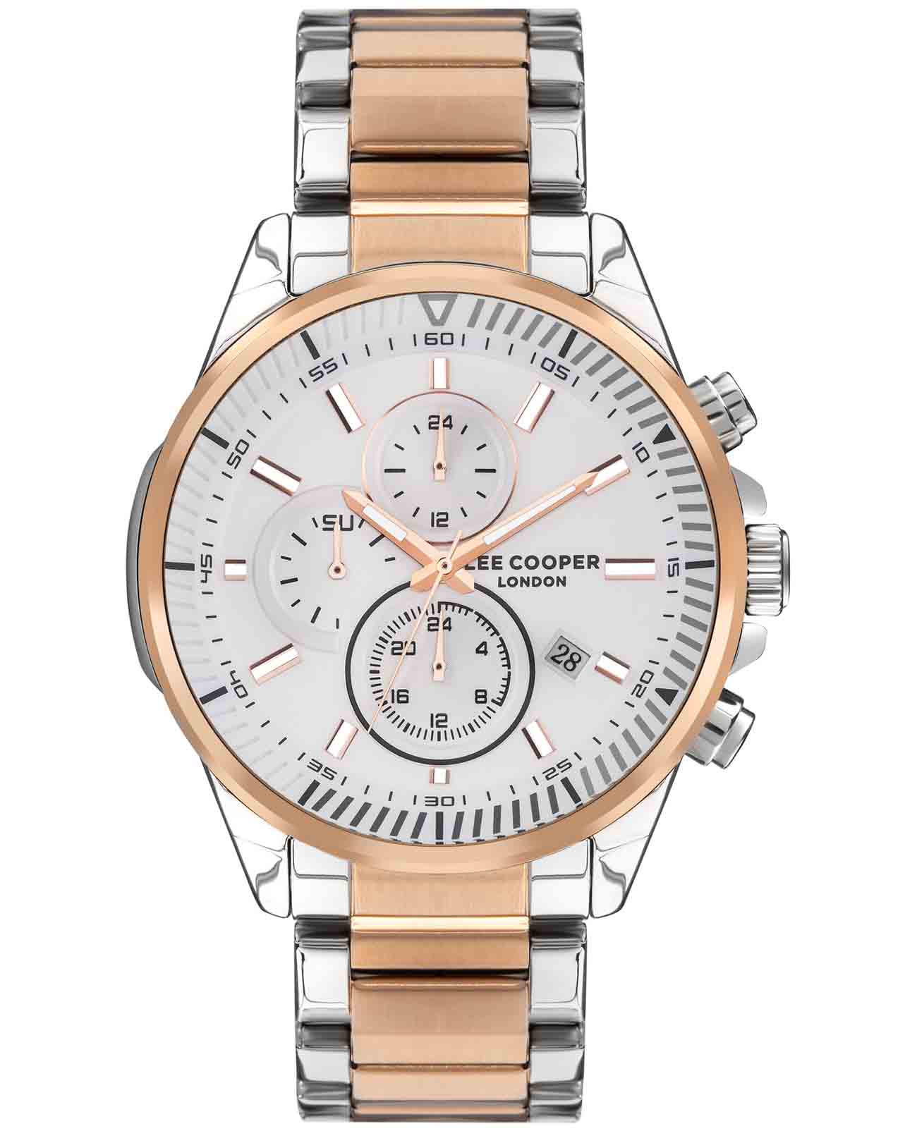 Мужские часы Lee Cooper LC07486.550 — элегантная модель с функциональными возможностями для повседневного использования. Круглый корпус из суперметалла диаметром 46 мм придаёт часам классический и современный вид. Стрелки и метки покрыты люминесцентным покрытиемЛюминесцентное покрытиеПозволяет считывать показания времени в темноте. Производители наносят на стрелки, часовые индексы, безель или поверхность циферблата светонакопительный состав, дающий холодное свечение., обеспечивая удобное считывание показаний в условиях недостаточного освещения. Циферблат защищён минеральным стекломМинеральное стеклоМинеральное стекло представляет собой искусственно выращенный минерал кварца. Такое стекло отличается особой устойчивостью к повреждениям и царапинам. Уступает по некоторым качествам сапфировому стеклу., устойчивым к царапинам. Часы работают на кварцевом механизме, обеспечивающем точность хода. Браслет из нержавеющей стали с раскладной застёжкойРаскладная застёжкаТакой тип застёжки используется только на браслетах из металла. Она никогда не раскрывается полностью, происходит разделение на 2 и более частей. Раскладывающая застёжка снизит вероятность потери часов к минимуму. гарантирует удобную посадку и надёжную фиксацию на запястье. Водозащита 50 метров защищает часы от брызг и дождя, делая их подходящими для повседневного использования. БезельБезельВнешний ободок, закрепляющий стекло. В спортивных часах так называется поворотное кольцо с делениями на циферблате, выполняет роль таймера – замеряет отрезки времени на шкале. Неподвижный безель – элемент декора. Однонаправленно вращающийся безель на дайверских часах позволяет фиксировать моменты погружения и выныривания на поверхность. с IP-покрытиемIP-покрытиеМетод ионного напыления. Демонстрирует повышенную устойчивость к истиранию, окислению и химическим веществам. Под воздействием высокого давления и температуры около 1500°C молекулы металла надёжно соединяются с частицами корпуса часов.. Часы имеют встроенный календарь с отображением даты, дня недели и 24-часового формата, что делает их идеальными для организации вашего дня.