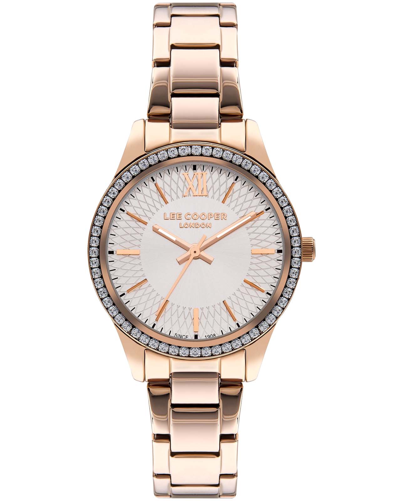 Женские часы Lee Cooper LC07569.430 — это стильное сочетание элегантности и современного дизайна. Круглый корпус диаметром 34 мм выполнен из суперметалла с IP-покрытиемIP-покрытиеМетод ионного напыления. Демонстрирует повышенную устойчивость к истиранию, окислению и химическим веществам. Под воздействием высокого давления и температуры около 1500°C молекулы металла надёжно соединяются с частицами корпуса часов. цвета розового золота. Неподвижный безельБезельВнешний ободок, закрепляющий стекло. В спортивных часах так называется поворотное кольцо с делениями на циферблате, выполняет роль таймера – замеряет отрезки времени на шкале. Неподвижный безель – элемент декора. Однонаправленно вращающийся безель на дайверских часах позволяет фиксировать моменты погружения и выныривания на поверхность. инкрустирован цирконами, что придает модели особый блеск. Серебристый циферблат защищен минеральным стекломМинеральное стеклоМинеральное стекло представляет собой искусственно выращенный минерал кварца. Такое стекло отличается особой устойчивостью к повреждениям и царапинам. Уступает по некоторым качествам сапфировому стеклу., обеспечивающим устойчивость к царапинам. Часы оснащены надежным кварцевым механизмом, а металлический браслет с IP-покрытиемIP-покрытиеМетод ионного напыления. Демонстрирует повышенную устойчивость к истиранию, окислению и химическим веществам. Под воздействием высокого давления и температуры около 1500°C молекулы металла надёжно соединяются с частицами корпуса часов. на раскладной застёжкеРаскладная застёжкаТакой тип застёжки используется только на браслетах из металла. Она никогда не раскрывается полностью, происходит разделение на 2 и более частей. Раскладывающая застёжка снизит вероятность потери часов к минимуму. гарантирует комфортную посадку на запястье. Стрелки с люминесцентным покрытиемЛюминесцентное покрытиеПозволяет считывать показания времени в темноте. Производители наносят на стрелки, часовые индексы, безель или поверхность циферблата светонакопительный состав, дающий холодное свечение. позволяют легко считывать время даже в условиях недостаточного освещения. Водозащита 30 метров защищает модель от случайных брызг и дождя. Lee Cooper  — отличный выбор для тех, кто ценит утонченность и качество.