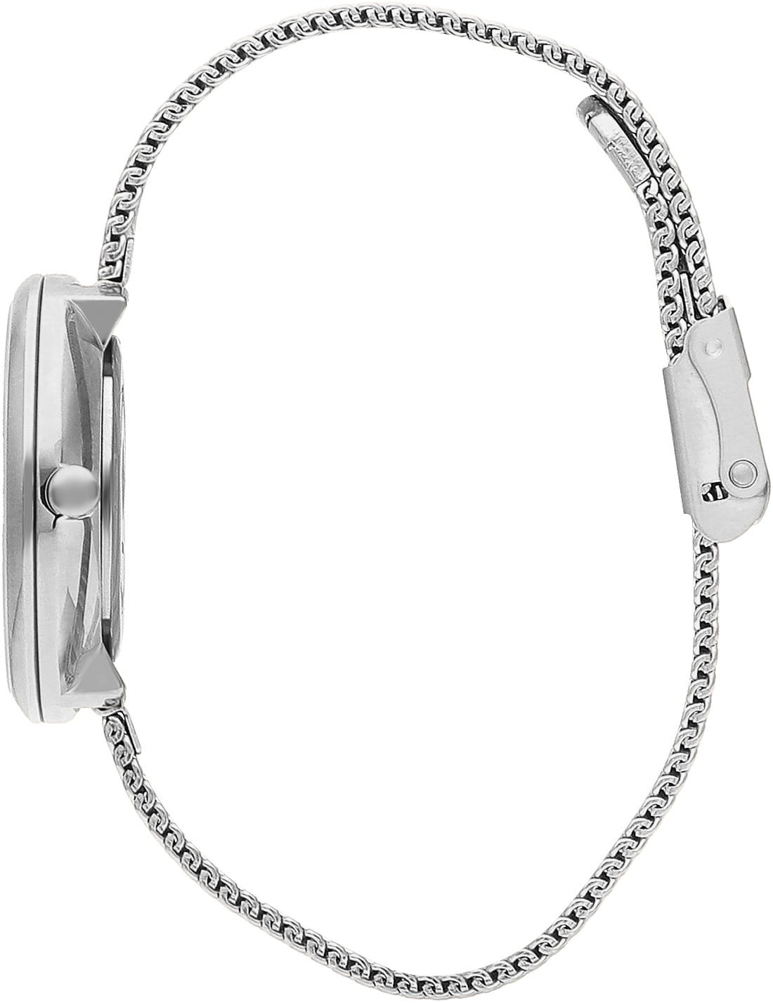 Женские кварцевые часы Lee Cooper LC07601.370 — это классический аксессуар с элегантным дизайном. Корпус диаметром 32 мм выполнен из суперметалла серебряного цвета. Циферблат зелёного цвета украшен вставками из циркония, придающими сияние и изысканность. Метки на циферблате в виде точек. Циферблат защищён минеральным стекломМинеральное стеклоМинеральное стекло представляет собой искусственно выращенный минерал кварца. Такое стекло отличается особой устойчивостью к повреждениям и царапинам. Уступает по некоторым качествам сапфировому стеклу.. Часы оснащены браслетом из суперметалла миланского плетения на раскладной застёжкеРаскладная застёжкаТакой тип застёжки используется только на браслетах из металла. Она никогда не раскрывается полностью, происходит разделение на 2 и более частей. Раскладывающая застёжка снизит вероятность потери часов к минимуму.. Водонепроницаемость 30 м позволяет использовать часы в повседневных условиях, защищая от случайных брызг и капель дождя. Сочетание лаконичного стиля и надёжного исполнения делает эти часы универсальным выбором на каждый день.