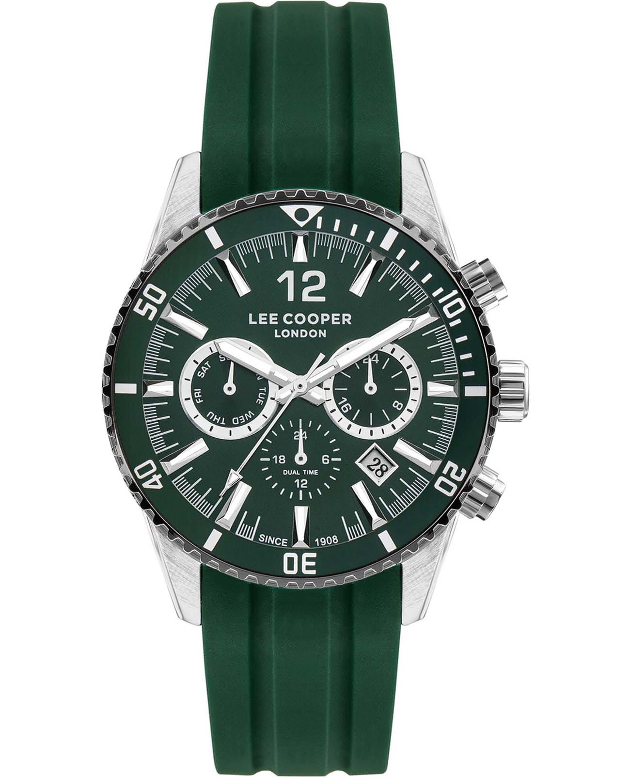 Мужские кварцевые часы Lee Cooper LC07628.377 — это мультифункциональный аксессуар с лаконичным дизайном. Изысканный корпус диаметром 44 мм выполнен из суперметалла серебристого цвета с поворотным безелемБезельВнешний ободок, закрепляющий стекло. В спортивных часах так называется поворотное кольцо с делениями на циферблате, выполняет роль таймера – замеряет отрезки времени на шкале. Неподвижный безель – элемент декора. Однонаправленно вращающийся безель на дайверских часах позволяет фиксировать моменты погружения и выныривания на поверхность. с IP-покрытиемIP-покрытиеМетод ионного напыления. Демонстрирует повышенную устойчивость к истиранию, окислению и химическим веществам. Под воздействием высокого давления и температуры около 1500°C молекулы металла надёжно соединяются с частицами корпуса часов.. Стильный циферблат оформлен изысканными индексами и дополнен окошками даты, дня недели и 24-часового индикатора. Циферблат защищён минеральным стекломМинеральное стеклоМинеральное стекло представляет собой искусственно выращенный минерал кварца. Такое стекло отличается особой устойчивостью к повреждениям и царапинам. Уступает по некоторым качествам сапфировому стеклу.. Стрелки и метки с люминесцентным покрытиемЛюминесцентное покрытиеПозволяет считывать показания времени в темноте. Производители наносят на стрелки, часовые индексы, безель или поверхность циферблата светонакопительный состав, дающий холодное свечение., обеспечивающим хорошую читаемость в темноте. Функция второго часового поясаВторой часовой поясФункция, позволяющая отображать время двух часовых поясов одновременно. делает часы удобными для путешественников. Часы оснащены надежным каучуковым ремешком с классической пряжкой, что обеспечивает удобство и комфорт. Водонепроницаемость 50 м позволяет использовать часы для повседневного ношения. Универсальный выбор для тех, кто ценит функциональность и надёжность.