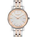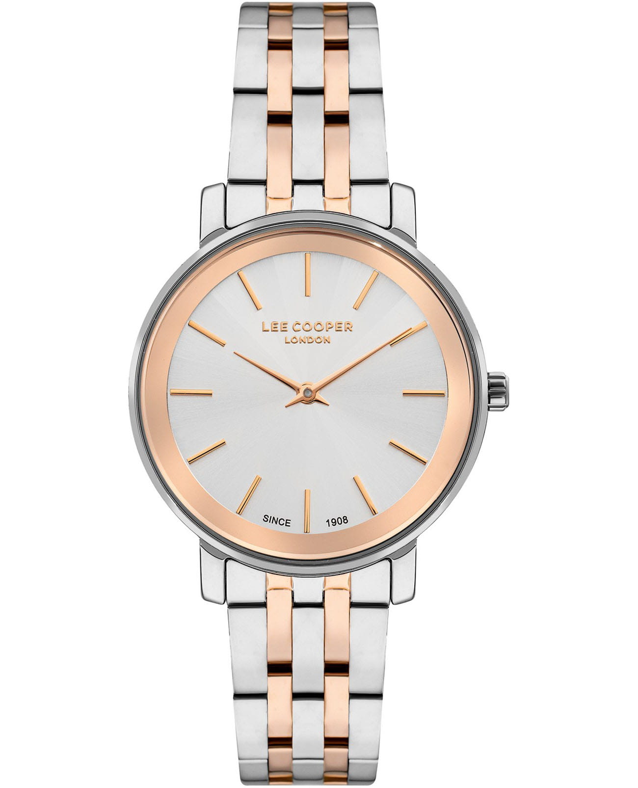 Женские часы Lee Cooper LC07684.530 выполнены в классическом стиле и отличаются лаконичным дизайном и надёжностью. Модель оснащена кварцевым механизмом, обеспечивающим точность хода и минимальное обслуживание. Корпус круглой формы имеет размер 34 мм, изготовлен из суперметалла, а также дополнен минеральным стеклом. Минеральное стеклоМинеральное стеклоМинеральное стекло представляет собой искусственно выращенный минерал кварца. Такое стекло отличается особой устойчивостью к повреждениям и царапинам. Уступает по некоторым качествам сапфировому стеклу., устойчивое к мелким повреждениям. Часы имеют браслет из нержавеющей стали с раскладной застёжкойРаскладная застёжкаТакой тип застёжки используется только на браслетах из металла. Она никогда не раскрывается полностью, происходит разделение на 2 и более частей. Раскладывающая застёжка снизит вероятность потери часов к минимуму. с частичным IP-покрытиемIP-покрытиеМетод ионного напыления. Демонстрирует повышенную устойчивость к истиранию, окислению и химическим веществам. Под воздействием высокого давления и температуры около 1500°C молекулы металла надёжно соединяются с частицами корпуса часов. цвета розового золота, устойчивым к возникновению аллергических реакций, благодаря использованию качественных материалов.  Циферблат оформлен с применением лаконичных индексов, а показания времени ограничиваются часовой и минутной стрелками — это делает дизайн строгим и функциональным. Благодаря отсутствию лишних деталей модель подходит как аксессуар на каждый день. Часы имеют базовый уровень водозащиты 3 АТМ , что позволяет использовать их в повседневных условиях без риска повреждения от случайных брызг воды или дождя. Это идеальный выбор для тех, кто ценит классический стиль, точность механизма и качество материалов в одном аксессуаре.