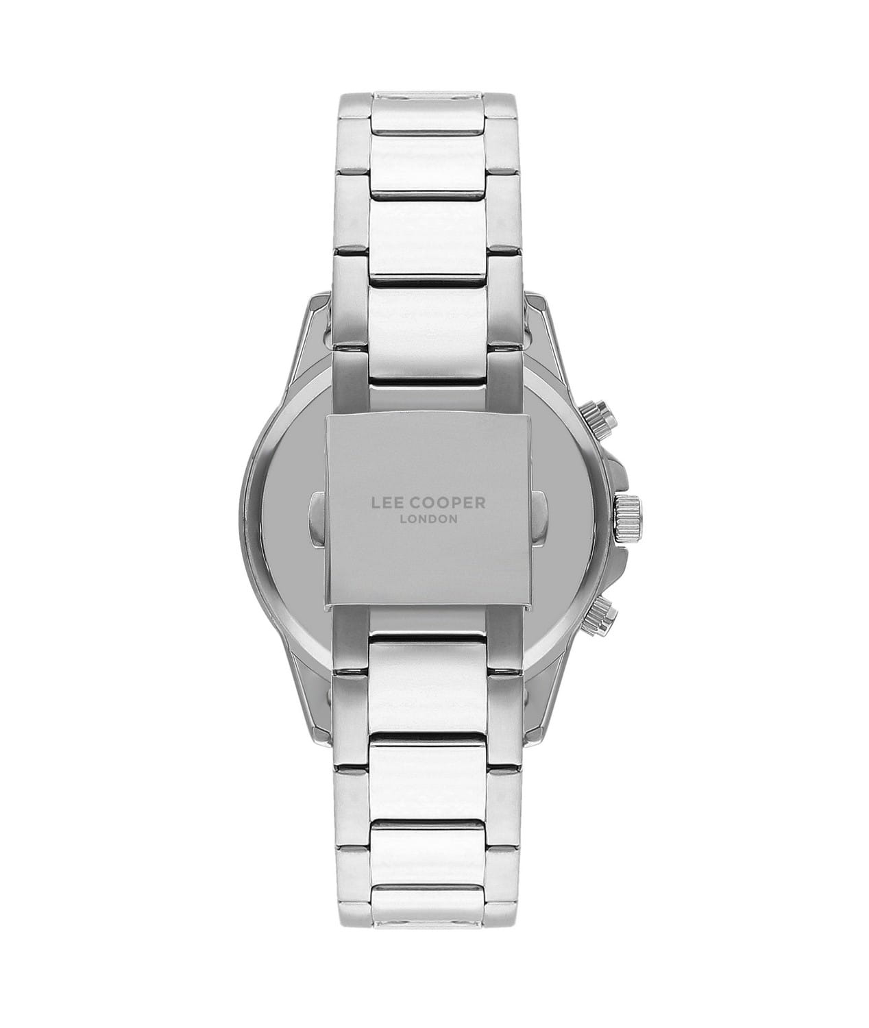 Lee Cooper LC07817.380  — элегантная модель с функциональными возможностями для повседневного использования. Корпус из суперметалла и диаметром 45 мм придаёт часам классический и современный вид. Циферблат защищён минеральным стекломМинеральное стеклоМинеральное стекло представляет собой искусственно выращенный минерал кварца. Такое стекло отличается особой устойчивостью к повреждениям и царапинам. Уступает по некоторым качествам сапфировому стеклу., устойчивым к царапинам, хорошо может выдержать небольшие удары и падения. Стильный циферблат оформлен изысканными индексами и дополнен окошками даты, дня недели и 24-часового индикатора, а также аккуратными метками и стрелками с люминесцентным покрытиемЛюминесцентное покрытиеПозволяет считывать показания времени в темноте. Производители наносят на стрелки, часовые индексы, безель или поверхность циферблата светонакопительный состав, дающий холодное свечение., что гарантирует читаемость даже в условиях недостаточного освещения. Часы работают на кварцевом механизме, обеспечивающем точность хода. Стальной браслет на раскладной застёжкеРаскладная застёжкаТакой тип застёжки используется только на браслетах из металла. Она никогда не раскрывается полностью, происходит разделение на 2 и более частей. Раскладывающая застёжка снизит вероятность потери часов к минимуму. гарантирует удобную посадку и надёжную фиксацию на запястье. Водозащита 50 метров защищает часы от брызг и дождя, делая их подходящими для повседневного использования.