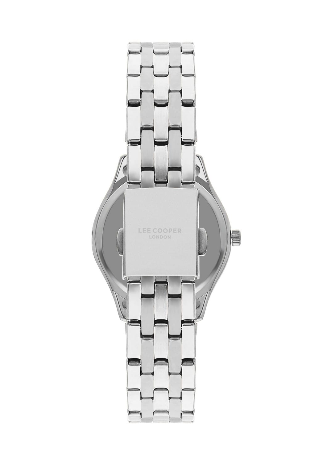 Женские часы Lee Cooper LC07832.390 выполнены в классическом стиле и сочетают строгий дизайн с надёжным механизмом. Модель оснащена кварцевым механизмом, обеспечивающим точность хода и минимальное обслуживание. Корпус круглой формы имеет размер 34 мм, изготовлен из суперметалла, гарантирует комфорт при ношении. Циферблат дополнен изящными вставками из циркона для чёткого отсчёта времени. Защиту циферблата обеспечивает минеральное стеклоМинеральное стеклоМинеральное стекло представляет собой искусственно выращенный минерал кварца. Такое стекло отличается особой устойчивостью к повреждениям и царапинам. Уступает по некоторым качествам сапфировому стеклу., устойчивое к мелким механическим повреждениям. Стрелки с люминесцентным покрытиемЛюминесцентное покрытиеПозволяет считывать показания времени в темноте. Производители наносят на стрелки, часовые индексы, безель или поверхность циферблата светонакопительный состав, дающий холодное свечение.. Стальной браслет на раскладной застёжкеРаскладная застёжкаТакой тип застёжки используется только на браслетах из металла. Она никогда не раскрывается полностью, происходит разделение на 2 и более частей. Раскладывающая застёжка снизит вероятность потери часов к минимуму. гарантирует удобную посадку и надёжную фиксацию на запястье. Водозащита 30WR позволяет использовать часы в повседневных условиях без риска повреждения от случайных брызг воды. Это сочетание классического дизайна, прочности материалов и качества исполнения для уверенных в себе женщин.