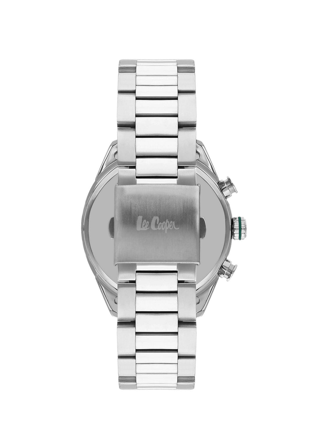 Мужские часы Lee Cooper LC07834.370 — это стильное сочетание элегантности и современного дизайна. Круглый корпус диаметром 45 мм выполнен из суперметалла с неподвижным безелемБезельВнешний ободок, закрепляющий стекло. В спортивных часах так называется поворотное кольцо с делениями на циферблате, выполняет роль таймера – замеряет отрезки времени на шкале. Неподвижный безель – элемент декора. Однонаправленно вращающийся безель на дайверских часах позволяет фиксировать моменты погружения и выныривания на поверхность. с IP-покрытиемIP-покрытиеМетод ионного напыления. Демонстрирует повышенную устойчивость к истиранию, окислению и химическим веществам. Под воздействием высокого давления и температуры около 1500°C молекулы металла надёжно соединяются с частицами корпуса часов., который придает модели особый изысканный вид. Циферблат защищен минеральным стекломМинеральное стеклоМинеральное стекло представляет собой искусственно выращенный минерал кварца. Такое стекло отличается особой устойчивостью к повреждениям и царапинам. Уступает по некоторым качествам сапфировому стеклу., обеспечивающим устойчивость к царапинам. Метки в виде штрихов. Часы оснащены надежным кварцевым механизмом, а стальной браслет на раскладной застёжкеРаскладная застёжкаТакой тип застёжки используется только на браслетах из металла. Она никогда не раскрывается полностью, происходит разделение на 2 и более частей. Раскладывающая застёжка снизит вероятность потери часов к минимуму. гарантирует комфортную посадку на запястье. Стрелки с люминесцентным покрытиемЛюминесцентное покрытиеПозволяет считывать показания времени в темноте. Производители наносят на стрелки, часовые индексы, безель или поверхность циферблата светонакопительный состав, дающий холодное свечение. позволяют легко считывать время даже в условиях недостаточного освещения. Мультифункциональная модель с индикацией даты, дня недели, с дополнительным 24-х часовым индикатором. Водозащита 50 метров позволит защитить корпус от случайных брызг или капель дождя. Lee Cooper  — отличный выбор для тех, кто ценит утонченность и качество.