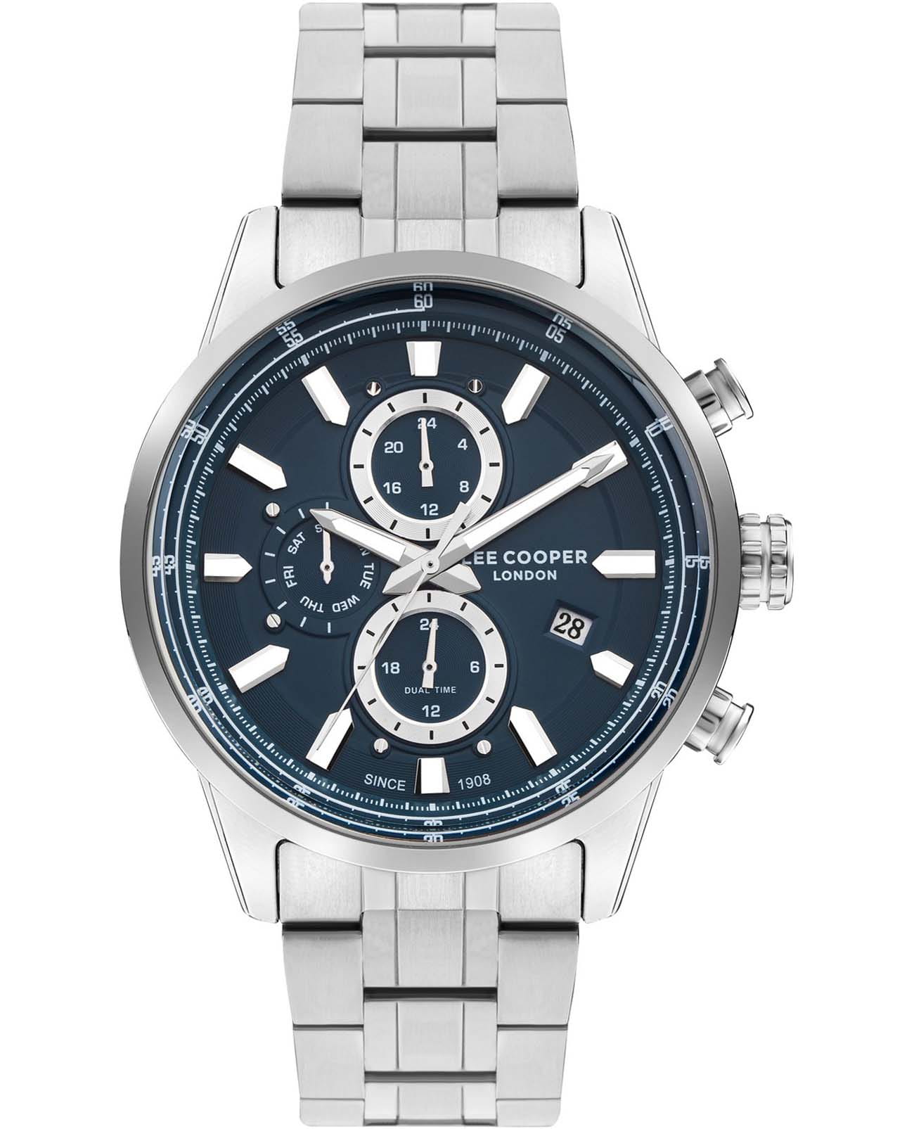 Мужские часы Lee Cooper LC07836.390 — это стильное сочетание элегантности и современного дизайна. Изысканный корпус диаметром 45 мм выполнен из суперметалла, который придает модели особый изысканный вид. Циферблат защищен минеральным стекломМинеральное стеклоМинеральное стекло представляет собой искусственно выращенный минерал кварца. Такое стекло отличается особой устойчивостью к повреждениям и царапинам. Уступает по некоторым качествам сапфировому стеклу., обеспечивающим устойчивость к царапинам. Метки в виде штрихов. Часы оснащены надежным кварцевым механизмом, а стальной браслет на раскладной застёжкеРаскладная застёжкаТакой тип застёжки используется только на браслетах из металла. Она никогда не раскрывается полностью, происходит разделение на 2 и более частей. Раскладывающая застёжка снизит вероятность потери часов к минимуму. гарантирует комфортную посадку на запястье. Стрелки и метки с люминесцентным покрытиемЛюминесцентное покрытиеПозволяет считывать показания времени в темноте. Производители наносят на стрелки, часовые индексы, безель или поверхность циферблата светонакопительный состав, дающий холодное свечение. позволяют легко считывать время даже в условиях недостаточного освещения. Мультифункциональная модель с индикацией даты, дня недели, со вторым часовым поясомВторой часовой поясФункция, позволяющая отображать время двух часовых поясов одновременно.. Водозащита 50 метров позволит защитить корпус от случайных брызг или капель дождя. Lee Cooper — отличный выбор для тех, кто ценит утонченность и качество.