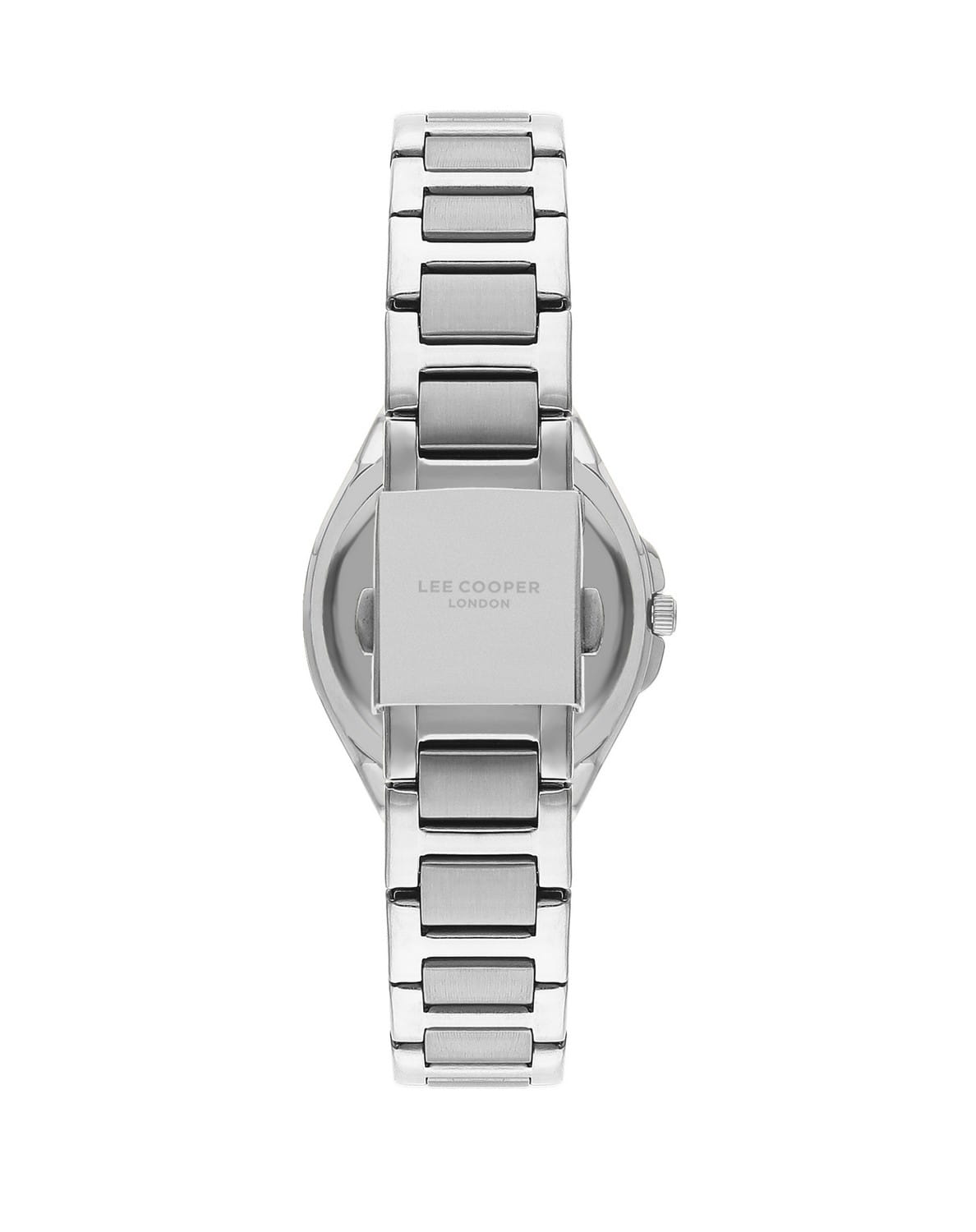 Женские наручные часы Lee Cooper LC07844.370 оснащены точным кварцевым механизмом, обеспечивающим высокую надежность и точность хода. Корпус часов изготовлен из суперметалла, что гарантирует долговечность и устойчивость к повреждениям. Три субдисплея отображают дату, день недели и 24-часовой формат времени, что добавляет функциональности и практичности. Для защиты циферблата используется минеральное стеклоМинеральное стеклоМинеральное стекло представляет собой искусственно выращенный минерал кварца. Такое стекло отличается особой устойчивостью к повреждениям и царапинам. Уступает по некоторым качествам сапфировому стеклу., устойчивое к царапинам и механическим повреждениям. Метки покрыты люминесцентным покрытиемЛюминесцентное покрытиеПозволяет считывать показания времени в темноте. Производители наносят на стрелки, часовые индексы, безель или поверхность циферблата светонакопительный состав, дающий холодное свечение., обеспечивающим отличную читаемость в темноте. Интегрированный браслет изготовлен из нержавеющей стали, которая славится своей долговечностью и возможностью полировки. Браслет гармонично дополняет дизайн часов и обеспечивает комфортное ношение в течение дня благодаря раскладной застёжкеРаскладная застёжкаТакой тип застёжки используется только на браслетах из металла. Она никогда не раскрывается полностью, происходит разделение на 2 и более частей. Раскладывающая застёжка снизит вероятность потери часов к минимуму.. Эти часы сочетают в себе стиль и функциональность, что делает их универсальным аксессуаром, подходящим к любому образу. Модель станет прекрасным подарком. Часы обладают водонепроницаемостью до 30 метров (3 АТМ), что позволяет использовать их в повседневной жизни, включая контакт с водой при мытье рук или дожде.