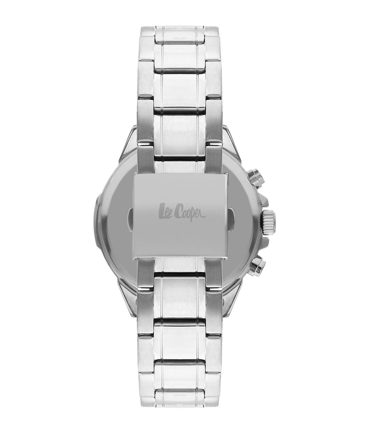 Мужские наручные часы Lee Cooper LC07846.390 оснащены кварцевым механизмом, обеспечивающий высокую точность хода и надежность. Элегантный корпус часов выполнен из суперметалла серебристого цвета, что делает их устойчивыми к внешним воздействиям и придает благородный вид. Циферблат украшен стрелками и метками с люминесцентным покрытиемЛюминесцентное покрытиеПозволяет считывать показания времени в темноте. Производители наносят на стрелки, часовые индексы, безель или поверхность циферблата светонакопительный состав, дающий холодное свечение., гармонично дополняющим общий дизайн модели. Для защиты циферблата используется минеральное стеклоМинеральное стеклоМинеральное стекло представляет собой искусственно выращенный минерал кварца. Такое стекло отличается особой устойчивостью к повреждениям и царапинам. Уступает по некоторым качествам сапфировому стеклу., устойчивое к царапинам и механическим повреждениям. Корпус имеет круглую форму диаметром 46 мм, что делает часы заметными и подходящими. Браслет из стали оснащен раскладной застёжкойРаскладная застёжкаТакой тип застёжки используется только на браслетах из металла. Она никогда не раскрывается полностью, происходит разделение на 2 и более частей. Раскладывающая застёжка снизит вероятность потери часов к минимуму., обеспечивающим комфортное и безопасное ношение. Вынесенный циферблат с 24-х часовым указателем времени, дня недели и вторым часовым поясомВторой часовой поясФункция, позволяющая отображать время двух часовых поясов одновременно.. Окошко даты находится в положении между 4 и 5 часов. Часы обладают водонепроницаемостью до 50 метров (5 АТМ), что позволяет использовать их в повседневной жизни, включая контакт с водой при мытье рук или дожде. Эти часы станут идеальным выбором для мужчин, ценящих стиль, качество и функциональность.