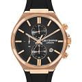 Мужские часы Lee Cooper LC07854.451 выполнены в классическом стиле и сочетают строгий дизайн с надёжным механизмом. Модель оснащена кварцевым механизмом, обеспечивающим точность хода и минимальное обслуживание. Корпус имеет размер 46 мм, изготовлен из суперметалла с IP-покрытиемIP-покрытиеМетод ионного напыления. Демонстрирует повышенную устойчивость к истиранию, окислению и химическим веществам. Под воздействием высокого давления и температуры около 1500°C молекулы металла надёжно соединяются с частицами корпуса часов.. Циферблат черного цвета дополнен индексами для чёткого отсчёта времени, а также функциями отображения даты, 24-часового индикатора времени и хронографаХронографФункция позволяет измерять отрезки времени с особой точностью: часы, минуты, секунды. Верным признаком хронографа является наличие на циферблате 3 дополнительных окошек-счётчиков.. Защиту циферблата обеспечивает минеральное стеклоМинеральное стеклоМинеральное стекло представляет собой искусственно выращенный минерал кварца. Такое стекло отличается особой устойчивостью к повреждениям и царапинам. Уступает по некоторым качествам сапфировому стеклу., устойчивое к мелким механическим повреждениям. Ремень из каучука оснащен стандартной застежкой, обеспечивающим комфортное и безопасное ношение. Водозащита 5 АТМ позволяет использовать часы в повседневных условиях без риска повреждения от случайных брызг воды. Это сочетание классического дизайна, прочности материалов и качества исполнения для уверенных в себе мужчин.