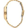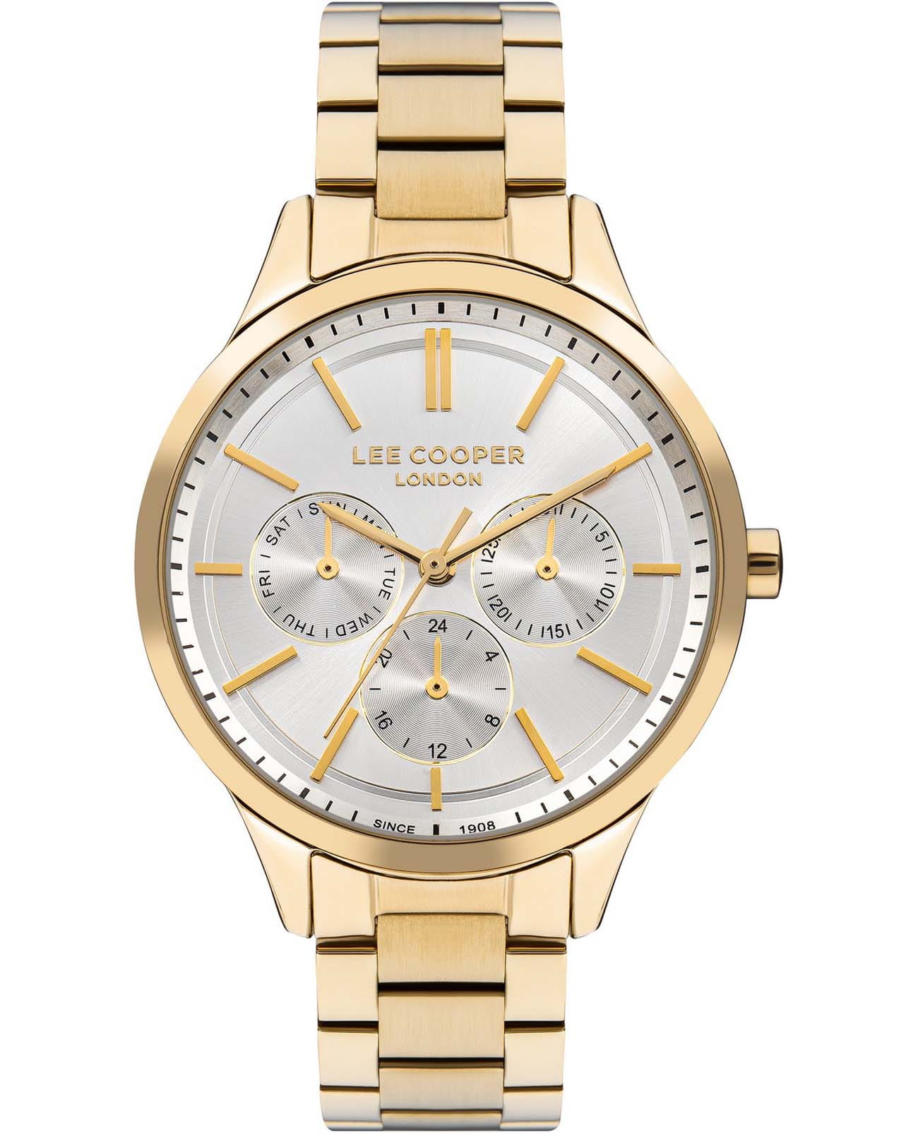 Женские часы Lee Cooper LC07865.130 — это стильное сочетание элегантности и современного дизайна. Круглый корпус диаметром 38 мм выполнен из суперметалла с IP-покрытиемIP-покрытиеМетод ионного напыления. Демонстрирует повышенную устойчивость к истиранию, окислению и химическим веществам. Под воздействием высокого давления и температуры около 1500°C молекулы металла надёжно соединяются с частицами корпуса часов. золотого цвета, придающий модели особый блеск. Серебристый циферблат защищен минеральным стекломМинеральное стеклоМинеральное стекло представляет собой искусственно выращенный минерал кварца. Такое стекло отличается особой устойчивостью к повреждениям и царапинам. Уступает по некоторым качествам сапфировому стеклу., обеспечивающим устойчивость к царапинам. Часы оснащены надежным кварцевым механизмом, а стальной браслет с IP-покрытиемIP-покрытиеМетод ионного напыления. Демонстрирует повышенную устойчивость к истиранию, окислению и химическим веществам. Под воздействием высокого давления и температуры около 1500°C молекулы металла надёжно соединяются с частицами корпуса часов. на раскладной застёжкеРаскладная застёжкаТакой тип застёжки используется только на браслетах из металла. Она никогда не раскрывается полностью, происходит разделение на 2 и более частей. Раскладывающая застёжка снизит вероятность потери часов к минимуму. гарантирует комфортную посадку на запястье. Мультифункциональная модель с индикацией даты, дня недели, с дополнительным 24-х часовым индикатором. Водозащита 30 метров защищает модель от случайных брызг и дождя. Lee Cooper  — отличный выбор для тех, кто ценит утонченность и качество.