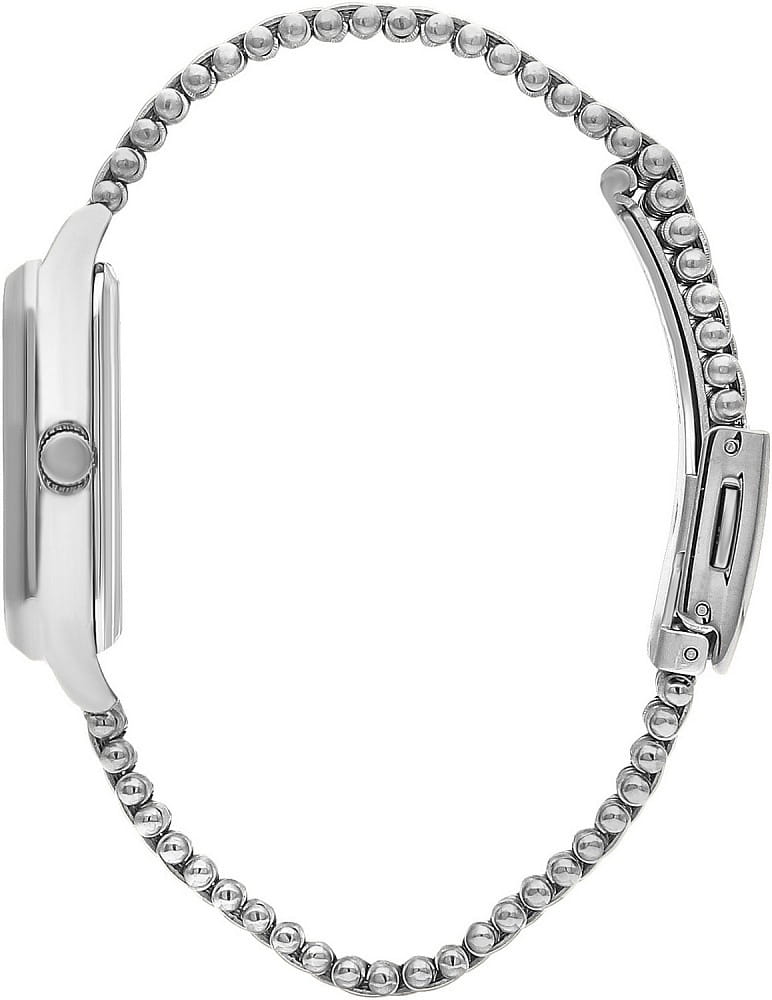 Женские часы Lee Cooper LC07957.270 с элегантным корпусом 29х38 мм выполнены из суперметалла, что обеспечивает прочность и износостойкость. Зеленый циферблат придаёт модели изысканный вид, а минеральное стеклоМинеральное стеклоМинеральное стекло представляет собой искусственно выращенный минерал кварца. Такое стекло отличается особой устойчивостью к повреждениям и царапинам. Уступает по некоторым качествам сапфировому стеклу. защищает от царапин и повреждений. В основе часов точный кварцевый механизм, гарантирующий стабильность хода. Водозащита 30 м защищает от случайных брызг.  Стрелки покрыты люминесцентным покрытиемЛюминесцентное покрытиеПозволяет считывать показания времени в темноте. Производители наносят на стрелки, часовые индексы, безель или поверхность циферблата светонакопительный состав, дающий холодное свечение., обеспечивающим отличную читаемость в темноте. Браслет из нержавеющей стали с IP-покрытиеIP-покрытиеМетод ионного напыления. Демонстрирует повышенную устойчивость к истиранию, окислению и химическим веществам. Под воздействием высокого давления и температуры около 1500°C молекулы металла надёжно соединяются с частицами корпуса часов. и раскладной застёжкойРаскладная застёжкаТакой тип застёжки используется только на браслетах из металла. Она никогда не раскрывается полностью, происходит разделение на 2 и более частей. Раскладывающая застёжка снизит вероятность потери часов к минимуму., что обеспечивает удобную посадку на запястье. Декоративные элементы с цирконием подчёркивают утончённость дизайна.