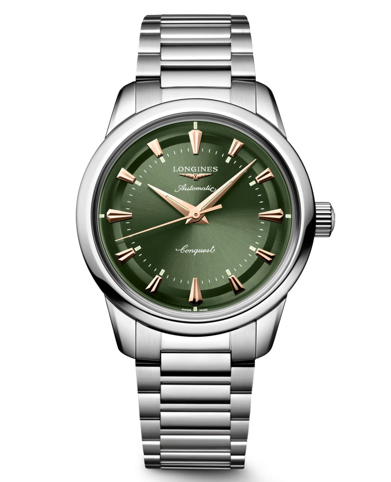 Longines Conquest Heritage L1.649.4.02.6 — элегантные швейцарские часы, воплощающие стиль 1950-х годов в современном исполнении. Корпус диаметром 38 мм выполнен из нержавеющей стали и отличается сбалансированными пропорциями и изящным профилем, подходящим как для делового, так и для повседневного образа.