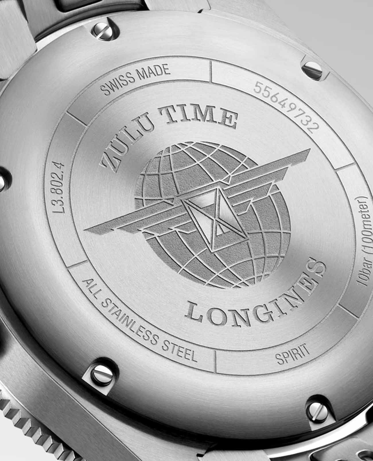 Мужские швейцарские механические часы Longines Spirit L3.802.4.53.6. Сапфировое стеклоСапфировое стеклоПрочный и надёжный материал из кристалла сапфира синтетического происхождения, характеризующийся особой твёрдостью и устойчивостью к царапинам и повреждениям. с многослойным антибликовым покрытием с обеих сторон, устойчивое к появлению царапин, обладающее высокой прозрачностью. Корпус часов изготовлен из стали. Вращающийся безельБезельВнешний ободок, закрепляющий стекло. В спортивных часах так называется поворотное кольцо с делениями на циферблате, выполняет роль таймера – замеряет отрезки времени на шкале. Неподвижный безель – элемент декора. Однонаправленно вращающийся безель на дайверских часах позволяет фиксировать моменты погружения и выныривания на поверхность. из стали и керамики, защищенный от царапин, никогда не изнашивается и не выцветает. Стрелки и метки с люминесцентным покрытиемЛюминесцентное покрытиеПозволяет считывать показания времени в темноте. Производители наносят на стрелки, часовые индексы, безель или поверхность циферблата светонакопительный состав, дающий холодное свечение.. Класс водозащиты: 100 метров, позволит плавать, нырять и заниматься другими водными видами спорт. Стальной браслет на раскладной застёжкеРаскладная застёжкаТакой тип застёжки используется только на браслетах из металла. Она никогда не раскрывается полностью, происходит разделение на 2 и более частей. Раскладывающая застёжка снизит вероятность потери часов к минимуму..