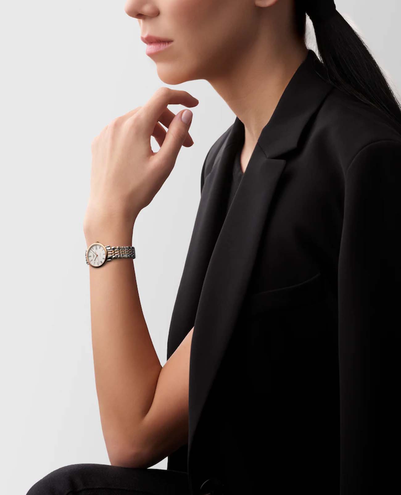 Водозащита класса 30 метров гарантирует надежную защиту корпуса от случайных брызг и капель дождя, позволяя вам наслаждаться этими часами в любых условиях. Браслет, сочетающий сталь и 18-каратное золото18-каратное золотоОбозначение по каратной системе пробирования, оно показывает, сколько драгоценного металла содержится в изделии. 18 карат - в составе 75% чистого золота, соответствует 750 пробе.