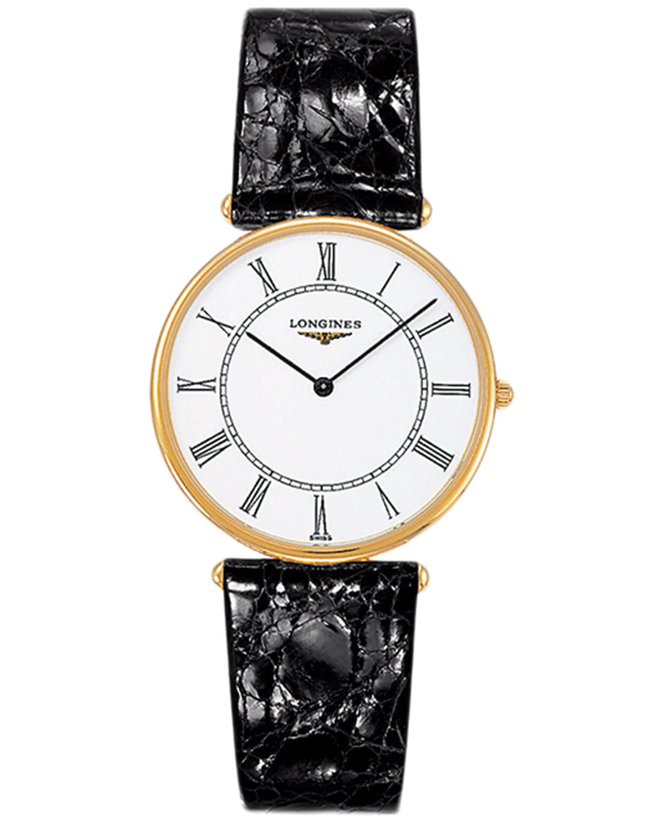 Мужские швейцарские часы с кожаным ремешком Longines Agassiz L4.691.6.11.0, кварцевый механизм с высокой точностью. Сапфировое стеклоСапфировое стеклоПрочный и надёжный материал из кристалла сапфира синтетического происхождения, характеризующийся особой твёрдостью и устойчивостью к царапинам и повреждениям. устойчивое к появлению царапин, обладающее высокой прозрачностью. Класс водозащиты: 30 метров, позволит защитить корпус от случайных брызг или капель дождя. Корпус часов изготовлен из 18-каратного золота18-каратное золотоОбозначение по каратной системе пробирования, оно показывает, сколько драгоценного металла содержится в изделии. 18 карат - в составе 75% чистого золота, соответствует 750 пробе.