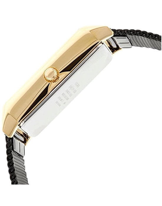 Шикарные наручные часы выдержаны в стиле винтаж. Цветовая расцветка сочетает в себе благородно смотрящиеся черный и золотой цвета. Браслет миланского плетения надежно закрепляется с помощью регулируемой застежки и будет изящно обрамлять запястье. В прямоугольный корпус из нержавеющей стали вставлено защитное минеральное стекло. На циферблате расположены отчетливые временные отметки в виде штрихов. Точность хода обеспечивается кварцевым механизмом. Срок службы батарейки составляет 3 года.