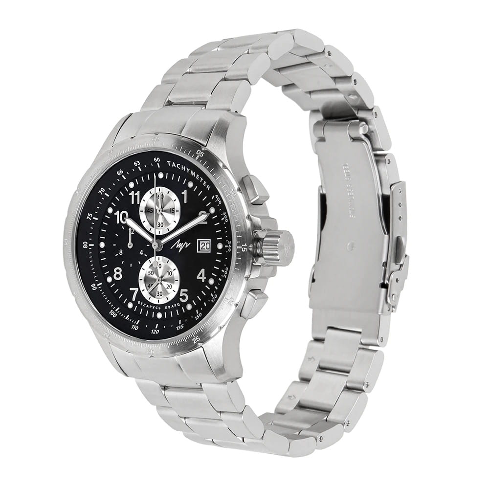 Мужские наручные часы Луч Aviator 740280595 — это стильный хронографХронографФункция позволяет измерять отрезки времени с особой точностью: часы, минуты, секунды. Верным признаком хронографа является наличие на циферблате 3 дополнительных окошек-счётчиков., который сочетает элегантность и современный дизайн. Элегантный корпус диаметром 44 мм выполнен из нержавеющей стали придает модели особый изысканный вид. Циферблат защищен сапфировым стекломСапфировое стеклоПрочный и надёжный материал из кристалла сапфира синтетического происхождения, характеризующийся особой твёрдостью и устойчивостью к царапинам и повреждениям., обеспечивающим устойчивость к царапинам. Метки в виде штрихов и арабских цифр, окошко даты находится в положении 3 часа. Часы оснащены кварцевым механизмом высокой точности, а стальной браслет на раскладной застёжкеРаскладная застёжкаТакой тип застёжки используется только на браслетах из металла. Она никогда не раскрывается полностью, происходит разделение на 2 и более частей. Раскладывающая застёжка снизит вероятность потери часов к минимуму. гарантирует комфортную посадку на запястье. Стрелки с люминесцентным покрытиемЛюминесцентное покрытиеПозволяет считывать показания времени в темноте. Производители наносят на стрелки, часовые индексы, безель или поверхность циферблата светонакопительный состав, дающий холодное свечение. позволяют легко считывать время даже в условиях недостаточного освещения, тахиметрТахиметрРазмеченная шкала, располагается на ободке или безеле часов. Тахиметр позволяет рассчитать скорость на определённом участке пути, расстояние измеряется в километрах или милях. по внешнему краю. Водозащита 100 метров позволит плавать, нырять и заниматься другими водными видами спорта. Луч — отличный выбор для тех, кто ценит утонченность и качество. В комплекте два ремня: кожаный и стальной.