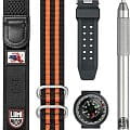 Яркий оранжевый циферблат в сочетании со спортивным дизайном наделяют эти часы великолепной энергетикой. Они, несомненно, выделят вас. Evo Seal For Scott Cassell.12-ти и 24-х часовой формат времени. Вращающийся безель. Задняя крышка из усиленного карбона закреплена стальными винтами. Заводная головка с защитой. В комплекте: два сменных текстильных ремешка, инструмент для их замены и компас. Материал корпуса: пластик, усиленный прессованный карбон; Материал браслета: полиуретановый; Стекло: Минеральное; Водозащита: 200 м. (WR 200).