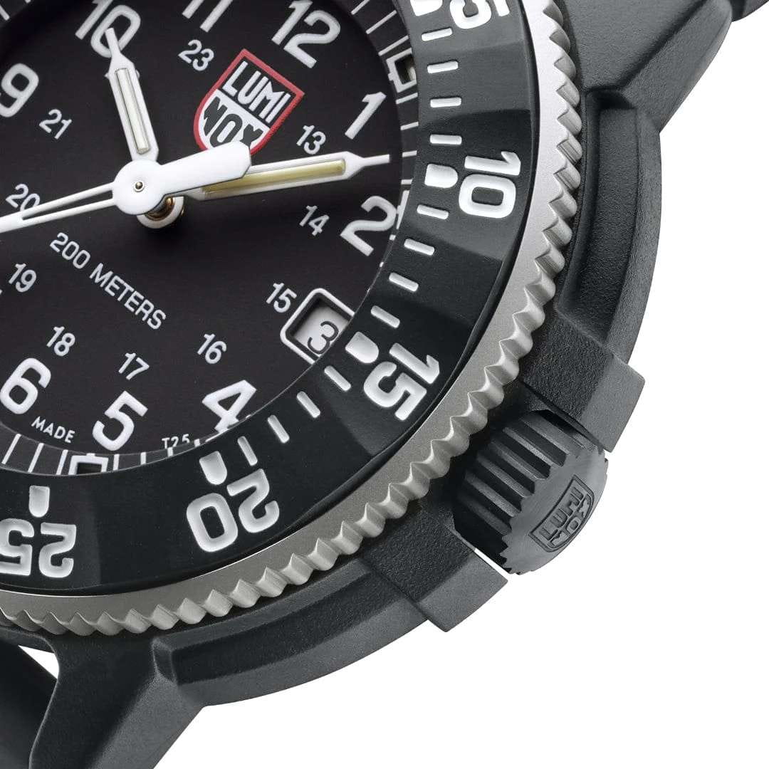 Часы Luminox XS.3001.H — это символ надежности и стиля, созданный специально для мужчин, которые не знают преград. Эти швейцарские часы, посвященные 35-летию создания первых моделей Luminox, оснащены кварцевым механизмом с калибром ETA F06.412, обеспечивающим высокую точность. Корпус выполнен из прочного карбона CARBONOX™, что делает его устойчивым к износу и внешним воздействиям. Черный циферблат защищен сапфировым стекломСапфировое стеклоПрочный и надёжный материал из кристалла сапфира синтетического происхождения, характеризующийся особой твёрдостью и устойчивостью к царапинам и повреждениям. с антибликовым покрытиемАнтибликовое покрытиеСлой оксида металла в 0,13-0,3 микрон, благодаря которому стекло часов не бликует и не отражает свет. Антибликовое покрытие уменьшает отражение света в 10 раз, обеспечивая отличную читаемость показателей циферблата., что повышает его долговечность и улучшает читаемость при ярком освещении. Водозащита до 200 метров позволяет использовать часы в самых экстремальных условиях, включая водные виды спорта. Метки в виде арабских цифр и окошко даты в положении 3 часа добавляют удобства в повседневном использовании. Специальная технология LLTLLTLLT — это автономный механизм подсветки, основанный на использовании микроскопических газонаполненных элементов. Специальные герметичные капсулы из боросиликатного стекла, интегрированные в циферблат, генерируют свечение без необходимости подключения к внешним источникам энергии. Для их работы не требуется ни дополнительный свет, ни механическое воздействие (например, нажатие кнопки). Свечение возникает благодаря химическому процессу: реакция между тритием, заключенным в капсулах, и люминофорным покрытием создает стабильное автономное освещение. Технология обеспечивает энергетическую независимость и долговечность подсветки.-подсветки позволяет определять время в полной темноте на протяжении 25 лет. Стальной вращающийся безельБезельВнешний ободок, закрепляющий стекло. В спортивных часах так называется поворотное кольцо с делениями на циферблате, выполняет роль таймера – замеряет отрезки времени на шкале. Неподвижный безель – элемент декора. Однонаправленно вращающийся безель на дайверских часах позволяет фиксировать моменты погружения и выныривания на поверхность. c PVD-покрытиемPVDУльтратонкое покрытие наносится в технике вакуумного напыления, сочетает в себе нитрид титана особой прочности со слоем золота или оксида хрома. Несёт в себе декоративную или защитную функцию. со светящейся меткой на 12 часов вращается в одном направлении, обеспечивая дополнительный комфорт и функциональность. Завинчивающаяся заводная головка с защитой и стальная задняя крышка с гравировкой из стали 316L повышают герметичность и долговечность конструкции. Батарея часов рассчитана на 50 месяцев работы. Удобный ремешок из нитрилового каучука с классической застежкой обеспечивает комфортное ношение. Эти необыкновенные часы знаменуют собой новую главу в наследии, основанном на точности, инновациях и долгосрочном сотрудничестве с самой элитной военной силой в мире.