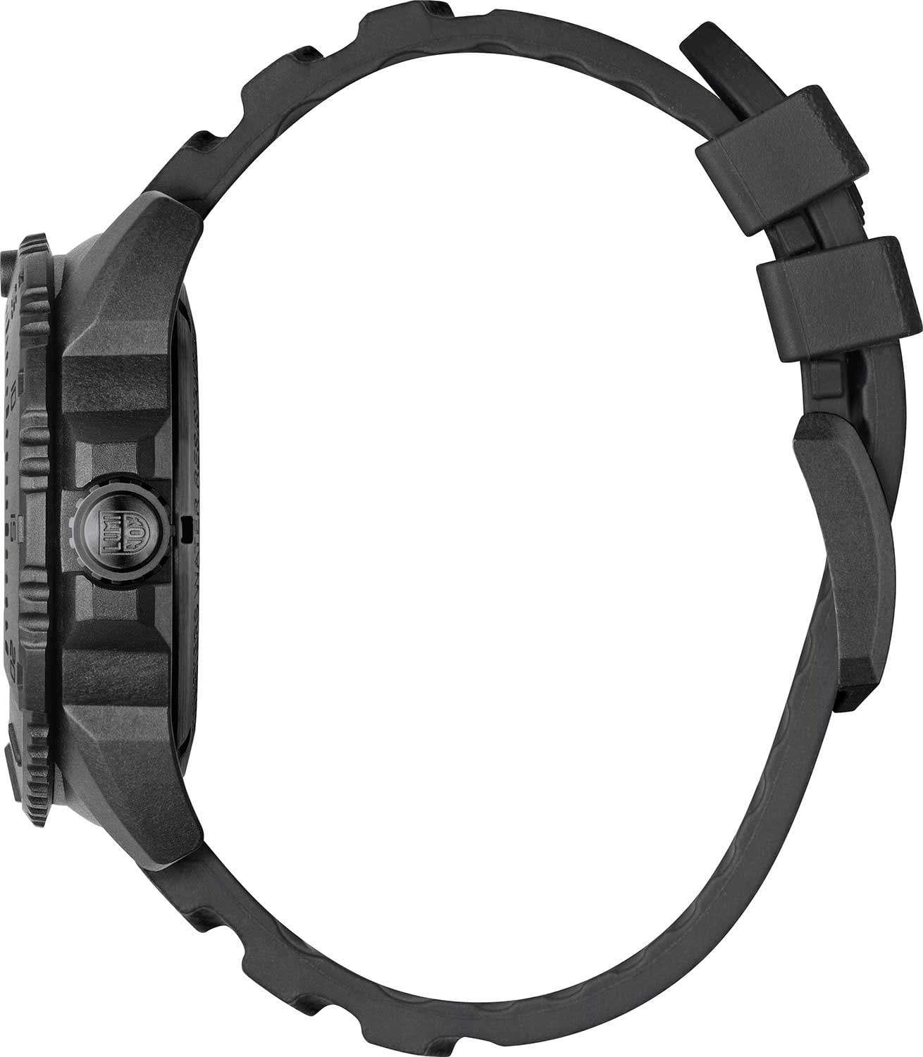 Швейцарские кварцевые часы Luminox XS.3601.BO.NSF идеально сочетают в себе современный стиль и надежность. Благодаря корпусу из пластика, усиленного прессованным карбономКарбонОт «carbon», «carbone» - углерод, углепластик - полимерный композиционный материал из переплетённых под определенным углом между собой нитей углеродного волокна, применяется для изготовления лёгких, но прочных деталей. В часах часто используют для украшения циферблатов и ремешков. Так же карбон используется в изготовлении корпусов. Такие корпуса обладают антикоррозионным свойством, не поддаются электромагнитному излучению, обладают повышенной прочностью и противоударностью., они отличаются прочностью и малым весом. Черный циферблат подчеркивает спортивный дизайн модели, а полиуретановый ремешок с классической застежкой обеспечивает комфорт при носке. Часы обладают водозащитой на глубине до 200 метров, что делает их идеальным выбором для любителей водных видов спорта. LLTLLTLLT — это автономный механизм подсветки, основанный на использовании микроскопических газонаполненных элементов. Специальные герметичные капсулы из боросиликатного стекла, интегрированные в циферблат, генерируют свечение без необходимости подключения к внешним источникам энергии. Для их работы не требуется ни дополнительный свет, ни механическое воздействие (например, нажатие кнопки). Свечение возникает благодаря химическому процессу: реакция между тритием, заключенным в капсулах, и люминофорным покрытием создает стабильное автономное освещение. Технология обеспечивает энергетическую независимость и долговечность подсветки.-подсветка гарантирует отличную видимость в темное время суток, а сапфировое стеклоСапфировое стеклоПрочный и надёжный материал из кристалла сапфира синтетического происхождения, характеризующийся особой твёрдостью и устойчивостью к царапинам и повреждениям. с антибликовым покрытиемАнтибликовое покрытиеСлой оксида металла в 0,13-0,3 микрон, благодаря которому стекло часов не бликует и не отражает свет. Антибликовое покрытие уменьшает отражение света в 10 раз, обеспечивая отличную читаемость показателей циферблата. защищает от царапин и обеспечивает четкость отображения. Модель оснащена функцией календаря с окошком даты, дополненным увеличительным стеклом для удобства использования. Часы поддерживают 12-ти и 24-х часовой формат времени, а вращающийся в одном направлении безельБезельВнешний ободок, закрепляющий стекло. В спортивных часах так называется поворотное кольцо с делениями на циферблате, выполняет роль таймера – замеряет отрезки времени на шкале. Неподвижный безель – элемент декора. Однонаправленно вращающийся безель на дайверских часах позволяет фиксировать моменты погружения и выныривания на поверхность. позволяет отслеживать время погружения или других активностей. Задняя крышка и заводная головка выполнены из стали, что добавляет дополнительную прочность конструкции. Заводная головка с защитой предотвращает случайное изменение времени. Благодаря диаметру в 45 мм и толщине 14 мм, эти часы обладают внушительным и привлекательным внешним видом.