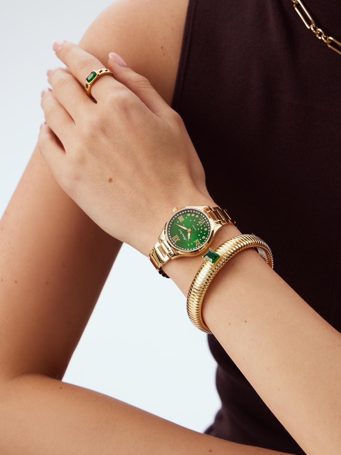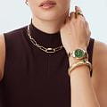 Женские кварцевые часы Mathey-Tissot Nicole D985SPYV — это стильное сочетание элегантности и современного дизайна. Изящный корпус выполнен из нержавеющей стали с PVD-покрытиемPVDУльтратонкое покрытие наносится в технике вакуумного напыления, сочетает в себе нитрид титана особой прочности со слоем золота или оксида хрома. Несёт в себе декоративную или защитную функцию. золотистого цвета, диаметром 32 мм, прекрасно впишется в ваш исключительный стиль. Изысканный циферблат с метками в виде римских цифр придает модели особый блеск и защищен сапфировым стекломСапфировое стеклоПрочный и надёжный материал из кристалла сапфира синтетического происхождения, характеризующийся особой твёрдостью и устойчивостью к царапинам и повреждениям., обеспечивающим устойчивость к царапинам. Циферблат украшен кристаллами. Мечевидные стрелки в стиле Dauphine. Часы оснащены надежным кварцевым механизмом. Рифленая заводная головка. Стальной браслет с PVD-покрытиемPVDУльтратонкое покрытие наносится в технике вакуумного напыления, сочетает в себе нитрид титана особой прочности со слоем золота или оксида хрома. Несёт в себе декоративную или защитную функцию. на застёжке-бабочке с кнопкамиЗастёжка "бабочка"Такой вид застёжки дополняется предохранителями, помогающими избежать случайного раскрытия браслета. Обладают изящным исполнением. гарантирует комфортное и безопасное ношение. Класс водозащиты: 50 метров позволит защитить корпус от случайных брызг или капель дождя. Mathey-Tissot — отличный выбор для тех, кто ценит утонченность и качество.