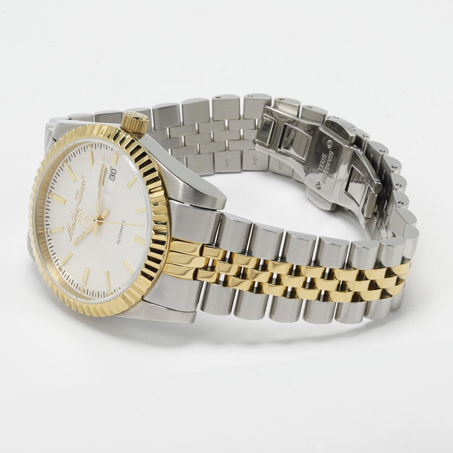 Мужские механические часы с автоподзаводом Mathey-Tissot Mathy H1810ATBI — это стильное сочетание элегантности и современного дизайна. Изящный корпус выполнен из нержавеющей стали, диаметром 42 мм, что придаст образу элегантности и надежности. Изысканный циферблат с метками в виде штрихов придает модели особый блеск. Циферблат защищен минеральным стекломМинеральное стеклоМинеральное стекло представляет собой искусственно выращенный минерал кварца. Такое стекло отличается особой устойчивостью к повреждениям и царапинам. Уступает по некоторым качествам сапфировому стеклу. с сапфировым покрытием, обеспечивает устойчивость к царапинам. БезельБезельВнешний ободок, закрепляющий стекло. В спортивных часах так называется поворотное кольцо с делениями на циферблате, выполняет роль таймера – замеряет отрезки времени на шкале. Неподвижный безель – элемент декора. Однонаправленно вращающийся безель на дайверских часах позволяет фиксировать моменты погружения и выныривания на поверхность. с PVD-покрытиемPVDУльтратонкое покрытие наносится в технике вакуумного напыления, сочетает в себе нитрид титана особой прочности со слоем золота или оксида хрома. Несёт в себе декоративную или защитную функцию. золотистого цвета. Стрелки с люминесцентным покрытиемЛюминесцентное покрытиеПозволяет считывать показания времени в темноте. Производители наносят на стрелки, часовые индексы, безель или поверхность циферблата светонакопительный состав, дающий холодное свечение.. Окошко даты находится в положении 3 часа. Стальной браслет с частичным PVD-покрытиемPVDУльтратонкое покрытие наносится в технике вакуумного напыления, сочетает в себе нитрид титана особой прочности со слоем золота или оксида хрома. Несёт в себе декоративную или защитную функцию. на застёжке-бабочке с кнопкамиЗастёжка "бабочка"Такой вид застёжки дополняется предохранителями, помогающими избежать случайного раскрытия браслета. Обладают изящным исполнением. , гарантирует комфортное и безопасное ношение. Рифленая заводная головка. Класс водозащиты: 50 метров позволит защитить корпус от случайных брызг или капель дождя. Mathey-Tissot — отличный выбор для тех, кто ценит утонченность и качество.
