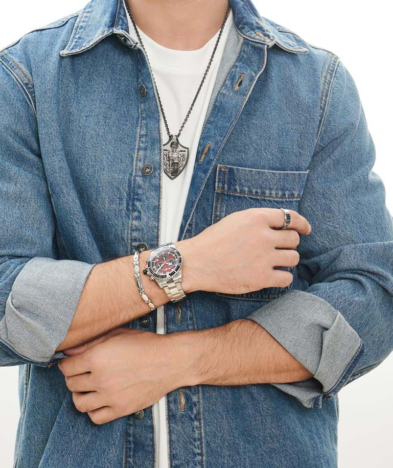 Мужские кварцевые часы-хронографХронографФункция позволяет измерять отрезки времени с особой точностью: часы, минуты, секунды. Верным признаком хронографа является наличие на циферблате 3 дополнительных окошек-счётчиков. с секундомеромСекундомерСекундоме́р — прибор, способный измерять интервалы времени с точностью до долей секунды. Mathey-Tissot Mathy H908CHAR — это стильное сочетание элегантности и современного дизайна. Изящный корпус выполнен из нержавеющей стали, диаметром 42 мм, что придаст образу элегантности и надежности. Изысканный циферблат с метками в виде штрихов придает модели особый блеск. Циферблат защищен минеральным стекломМинеральное стеклоМинеральное стекло представляет собой искусственно выращенный минерал кварца. Такое стекло отличается особой устойчивостью к повреждениям и царапинам. Уступает по некоторым качествам сапфировому стеклу. с сапфировым покрытием, обеспечивает устойчивость к царапинам. Стрелки и метки с люминесцентным покрытиемЛюминесцентное покрытиеПозволяет считывать показания времени в темноте. Производители наносят на стрелки, часовые индексы, безель или поверхность циферблата светонакопительный состав, дающий холодное свечение.. БезельБезельВнешний ободок, закрепляющий стекло. В спортивных часах так называется поворотное кольцо с делениями на циферблате, выполняет роль таймера – замеряет отрезки времени на шкале. Неподвижный безель – элемент декора. Однонаправленно вращающийся безель на дайверских часах позволяет фиксировать моменты погружения и выныривания на поверхность. с PVD-покрытиемPVDУльтратонкое покрытие наносится в технике вакуумного напыления, сочетает в себе нитрид титана особой прочности со слоем золота или оксида хрома. Несёт в себе декоративную или защитную функцию.. Окошко даты находится в положении между 4 и 5 часов. ТахиметрТахиметрРазмеченная шкала, располагается на ободке или безеле часов. Тахиметр позволяет рассчитать скорость на определённом участке пути, расстояние измеряется в километрах или милях. по внешнему краю. Стальной браслет на раскладной застёжке с фиксаторомРаскладная застёжкаТакой тип застёжки используется только на браслетах из металла. Она никогда не раскрывается полностью, происходит разделение на 2 и более частей. Раскладывающая застёжка снизит вероятность потери часов к минимуму., гарантирует комфортное и безопасное ношение. Рифленая заводная головка. Класс водозащиты: 100 метров позволит плавать, нырять и заниматься другими водными видами спорта. Mathey-Tissot — отличный выбор для тех, кто ценит утонченность и качество.