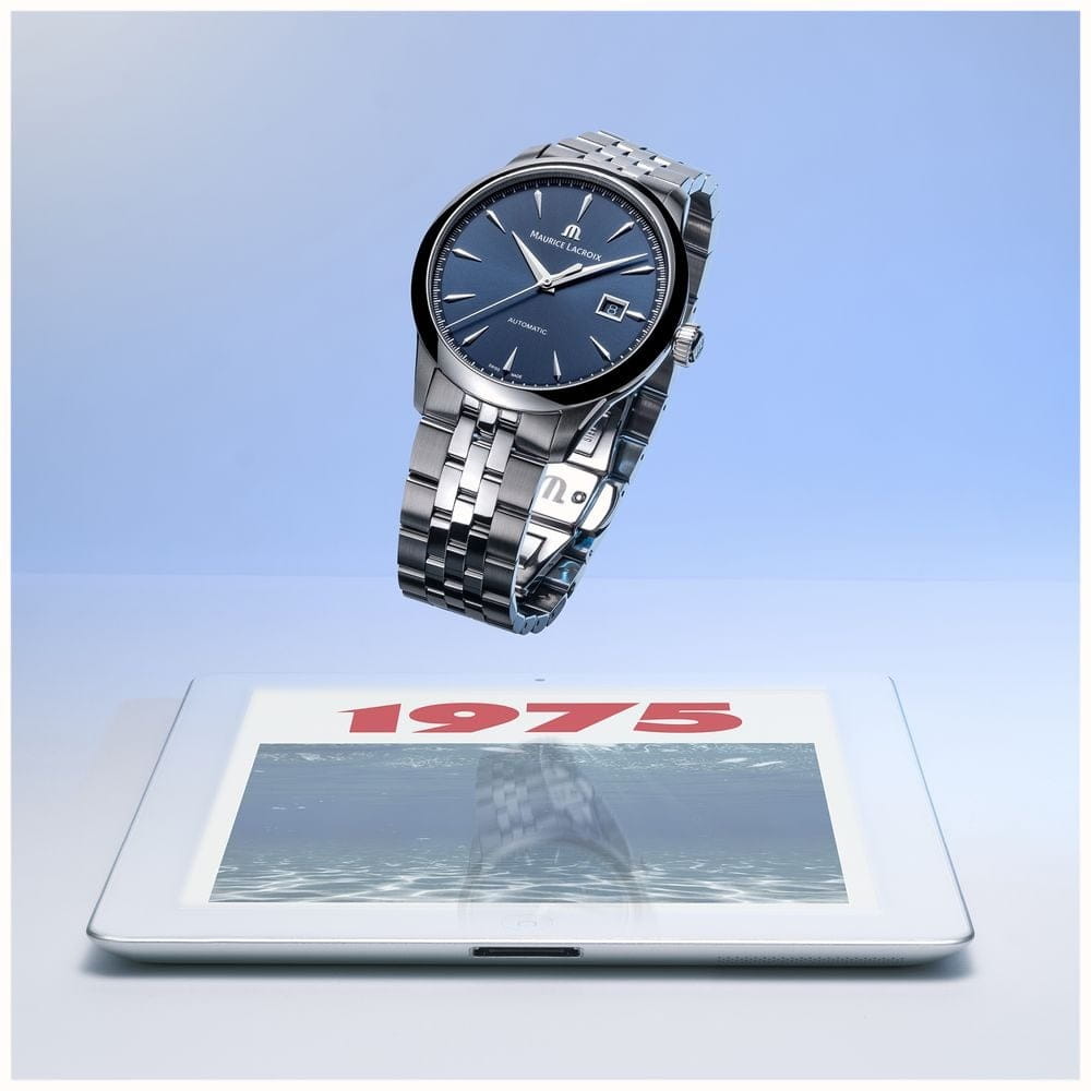 Швейцарские часы Maurice Lacroix 1975 756008-SS002-430-1 созданы для современных людей, ценящих стиль и качество. Эта модель, выпущенная в честь 50-летия бренда, сочетает в себе винтажный шарм и современную актуальность. Механические часы оснащены механизмом ML115 с высокой точностью хода. Корпус из нержавеющей стали диаметром 40 мм и толщиной 10 мм, с матовой и полированной отделкой, обеспечивает водозащиту до 100 метров. Синий циферблат с эффектом "солнечные лучи" украшен серебристыми индексами и стрелками, а также календарем с окошком даты на 3 часах. Сапфировое стеклоСапфировое стеклоПрочный и надёжный материал из кристалла сапфира синтетического происхождения, характеризующийся особой твёрдостью и устойчивостью к царапинам и повреждениям. с антибликовым покрытиемАнтибликовое покрытиеСлой оксида металла в 0,13-0,3 микрон, благодаря которому стекло часов не бликует и не отражает свет. Антибликовое покрытие уменьшает отражение света в 10 раз, обеспечивая отличную читаемость показателей циферблата. защищает циферблат. Часы комплектуются браслетом из нержавеющей стали, браслет из литых звеньев в пять рядов и системой быстрой смены ремешка. Застежка «бабочка»Застёжка "бабочка"Такой вид застёжки дополняется предохранителями, помогающими избежать случайного раскрытия браслета. Обладают изящным исполнением.