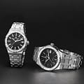Мужские швейцарские кварцевые часы Maurice Lacroix Aikon Quartz AI1108-SS002-330-1. Сапфировое стеклоСапфировое стеклоПрочный и надёжный материал из кристалла сапфира синтетического происхождения, характеризующийся особой твёрдостью и устойчивостью к царапинам и повреждениям. устойчивое к появлению царапин, обладающее высокой прозрачностью. Черный циферблат. Стрелки с люминесцентным покрытиемЛюминесцентное покрытиеПозволяет считывать показания времени в темноте. Производители наносят на стрелки, часовые индексы, безель или поверхность циферблата светонакопительный состав, дающий холодное свечение.. Класс водозащиты: 100 метров, позволит плавать, нырять и заниматься другими водными видами спорта. Окошко даты находится в положении 3 часов. Корпус и браслет часов изготовлены из стали. Браслет с застёжкой «бабочка» с кнопкамиЗастёжка "бабочка"Такой вид застёжки дополняется предохранителями, помогающими избежать случайного раскрытия браслета. Обладают изящным исполнением. .