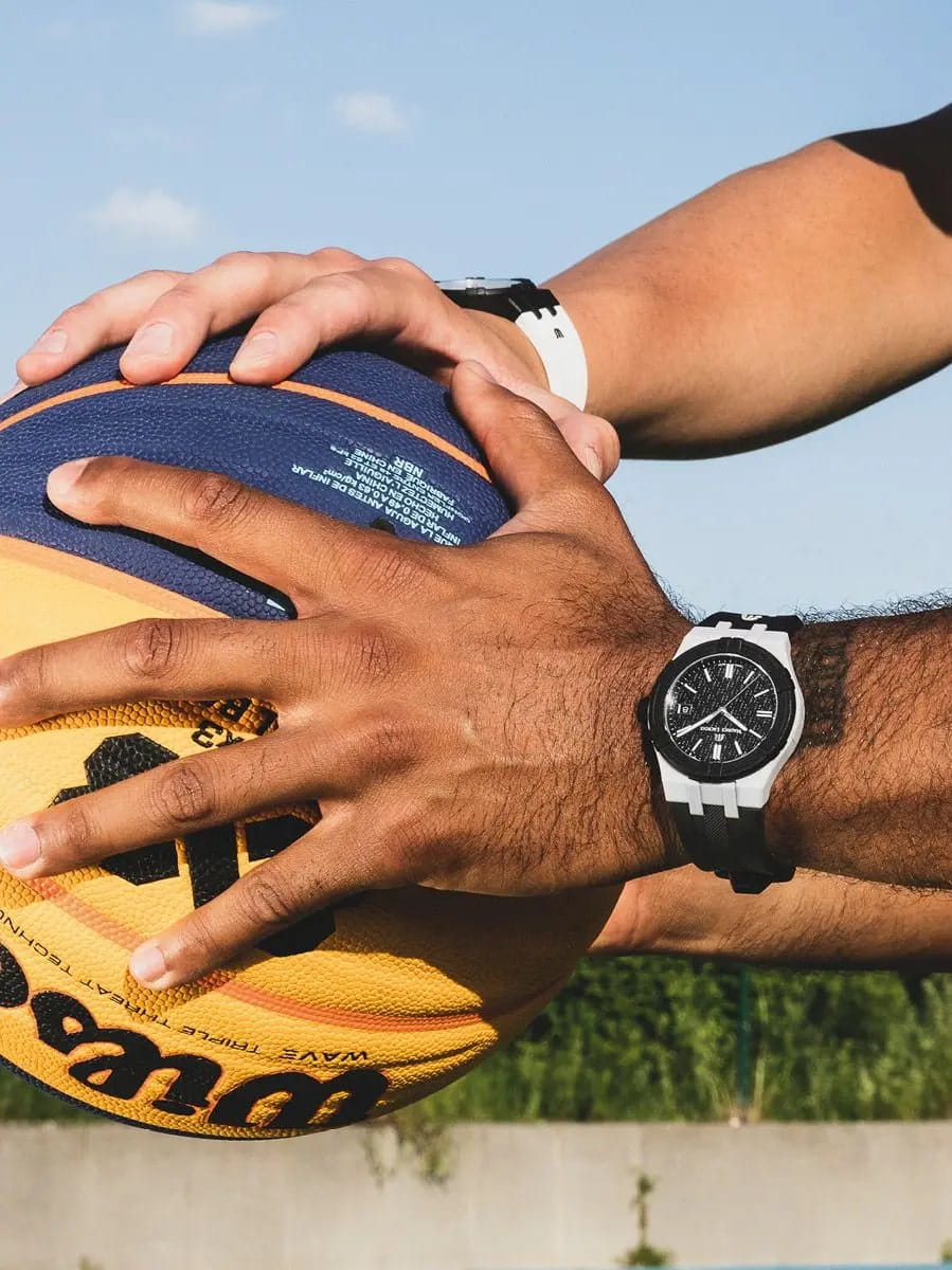 Новое специальное издание AIKON #tide FIBA3x3, наполненное энергией. Эти часы с баскетбольной тематикой, помещенные в 40-миллиметровый корпус, оснащены плоским сапфировым стеклом, улучшающим читаемость, а кварцевый механизм обеспечивает точность в мире, где секунды на счету. Эти две модели, идеально подходящие для придворных, выпускаются с черными или белыми циферблатами и поставляются на координирующих ремешках. На циферблатах нанесен логотип "3x3", выполненный в виде замысловатого мотива, а на задней крышке корпуса также выбит логотип ‘3x3’. Мужские швейцарские кварцевые часы Maurice Lacroix Aikon Tide Special Edition FIBA 3x3 AI2008-00YZ1-000-0. Сапфировое стеклоСапфировое стеклоПрочный и надёжный материал из кристалла сапфира синтетического происхождения, характеризующийся особой твёрдостью и устойчивостью к царапинам и повреждениям. устойчивое к появлению царапин, обладающее высокой прозрачностью. Черный циферблат. Стрелки и метки с люминесцентным покрытиемЛюминесцентное покрытиеПозволяет считывать показания времени в темноте. Производители наносят на стрелки, часовые индексы, безель или поверхность циферблата светонакопительный состав, дающий холодное свечение.. Класс водозащиты: 100 метров, позволит плавать, нырять и заниматься другими водными видами спорта. Окошко даты находится в положении 3 часов. Корпус выполнен из переработанного пластика, ранее загрязнявшего Мировой океан. Каучуковый ремешок с классической застежкой.