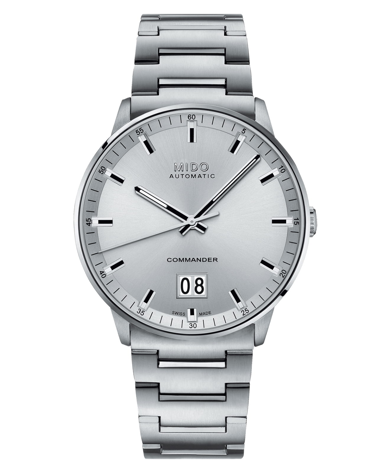 Мужские швейцарские механические часы Mido Commander Big Date M021.626.11.031.00, механический механизм (автоматический калибр) с высокой точностью. Часы Commander Big Date выпущены в честь 100-летнего юбилея марки. Крупное окошко даты в положении «6 часов» обеспечивает предельно удобную читаемость показаний. Сатинированный циферблат с солнечным узором отличается удивительной чистотой и строгостью, которую подчеркивает полированный безель. Сапфировое стекло устойчивое к появлению царапин, обладающее высокой прозрачностью. Класс водозащиты: 50 метров, позволит защитить корпус от случайных брызг или капель дождя. Корпус часов изготовлен из стали, серебристого цвета.