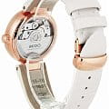 Стильная модель для прекрасной половины. Циферблат украшен натуральным перламутром, бриллианты вместо меток играют на свету. Механический механизм (автоматический калибр) с высокой точностью. Сапфировое стеклоСапфировое стеклоПрочный и надёжный материал из кристалла сапфира синтетического происхождения, характеризующийся особой твёрдостью и устойчивостью к царапинам и повреждениям. устойчивое к появлению царапин, обладающее высокой прозрачностью. Класс водозащиты: 50 метров, позволит защитить корпус от случайных брызг или капель дождя. Корпус часов изготовлен из нержавеющей стали с PVD-покрытиемPVDУльтратонкое покрытие наносится в технике вакуумного напыления, сочетает в себе нитрид титана особой прочности со слоем золота или оксида хрома. Несёт в себе декоративную или защитную функцию.. Кожаный ремешок с застёжкой «бабочка» с кнопкамиЗастёжка "бабочка"Такой вид застёжки дополняется предохранителями, помогающими избежать случайного раскрытия браслета. Обладают изящным исполнением. .