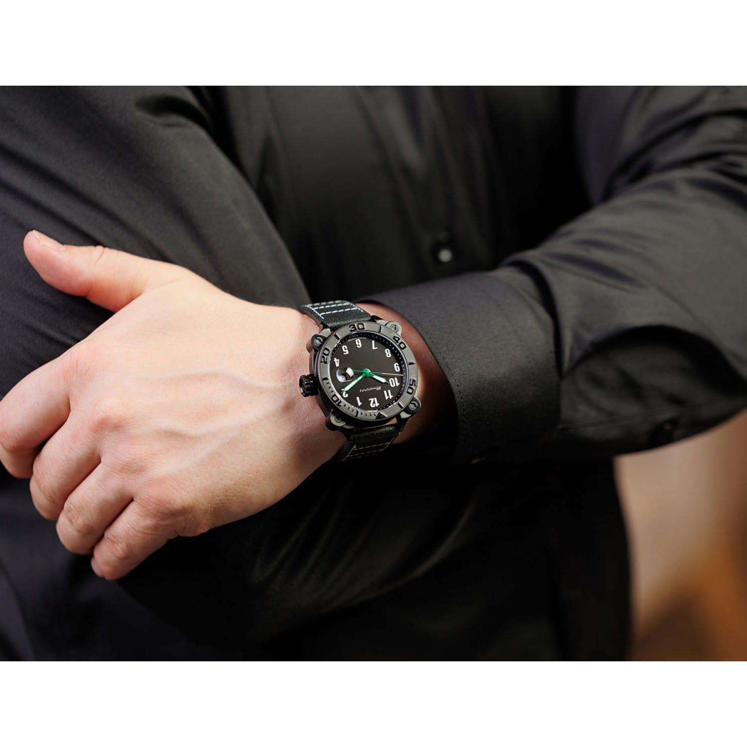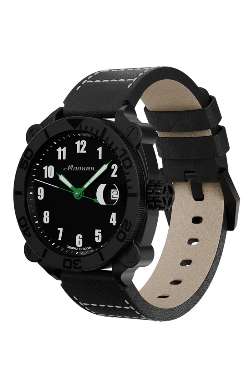 Мужские механические часы с автоподзаводом от бренда «МОЛНИЯ» — это стильный аксессуар, вдохновлённый дизайном приборной панели легендарного танка Т-72. Корпус диаметром 42 мм и толщиной 12 мм выполнен из нержавеющей стали 316L с IP-покрытиемIP-покрытиеМетод ионного напыления. Демонстрирует повышенную устойчивость к истиранию, окислению и химическим веществам. Под воздействием высокого давления и температуры около 1500°C молекулы металла надёжно соединяются с частицами корпуса часов.. БезельБезельВнешний ободок, закрепляющий стекло. В спортивных часах так называется поворотное кольцо с делениями на циферблате, выполняет роль таймера – замеряет отрезки времени на шкале. Неподвижный безель – элемент декора. Однонаправленно вращающийся безель на дайверских часах позволяет фиксировать моменты погружения и выныривания на поверхность. однонаправленный, вращающийся. Циферблат чёрного цвета оформлен арабскими цифрами и логотипом бренда. Окошко даты расположено в положении 3 часов и оснащено увеличительным стеклом. Стрелки и метки с люминесцентным покрытиемЛюминесцентное покрытиеПозволяет считывать показания времени в темноте. Производители наносят на стрелки, часовые индексы, безель или поверхность циферблата светонакопительный состав, дающий холодное свечение. Super-LumiNova. Циферблат защищён сапфировым стекломСапфировое стеклоПрочный и надёжный материал из кристалла сапфира синтетического происхождения, характеризующийся особой твёрдостью и устойчивостью к царапинам и повреждениям. с антибликовым покрытиемАнтибликовое покрытиеСлой оксида металла в 0,13-0,3 микрон, благодаря которому стекло часов не бликует и не отражает свет. Антибликовое покрытие уменьшает отражение света в 10 раз, обеспечивая отличную читаемость показателей циферблата.. Механизм — Русский автоматический калибр Восток 2416 запас хода до 42 часов. Заводная головка стилизована под гусеничную ленту, задняя крышка с гравировкой танка. Часы оснащены кожаным ремешком чёрного цвета с классической пряжкой и системой быстрой замены. Водонепроницаемость 100 м позволяет использовать часы для плавания и повседневного ношения. Идеальный выбор для тех, кто ценит инженерное наследие и мощный дизайн.