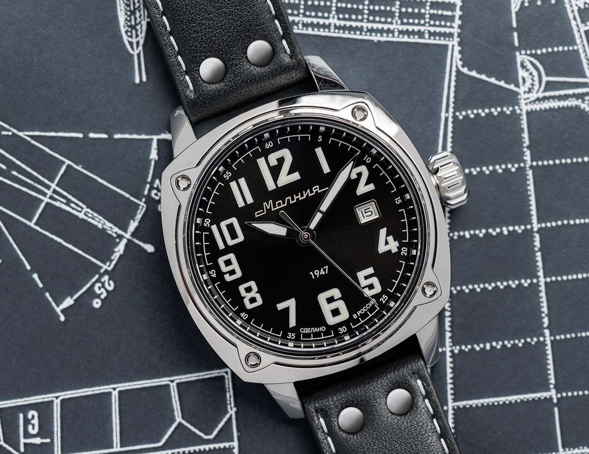 Мужские механические часы с автоподзаводом — это надёжный аксессуар от легендарного бренда «МОЛНИЯ», созданный на Челябинском часовом заводе. Корпус диаметром 42 мм выполнен из нержавеющей стали 316L с зеркальной полировкой. БезельБезельВнешний ободок, закрепляющий стекло. В спортивных часах так называется поворотное кольцо с делениями на циферблате, выполняет роль таймера – замеряет отрезки времени на шкале. Неподвижный безель – элемент декора. Однонаправленно вращающийся безель на дайверских часах позволяет фиксировать моменты погружения и выныривания на поверхность. также выполнен из стали с зеркальной отделкой. Циферблат чёрного цвета оформлен индексами и стрелками. Окошко даты расположено в положении 3 часов. Стрелки и метки с люминесцентным покрытиемЛюминесцентное покрытиеПозволяет считывать показания времени в темноте. Производители наносят на стрелки, часовые индексы, безель или поверхность циферблата светонакопительный состав, дающий холодное свечение. Super-LumiNova, обеспечивающим хорошую читаемость в темноте. Циферблат защищён сапфировым стекломСапфировое стеклоПрочный и надёжный материал из кристалла сапфира синтетического происхождения, характеризующийся особой твёрдостью и устойчивостью к царапинам и повреждениям. с антибликовым покрытиемАнтибликовое покрытиеСлой оксида металла в 0,13-0,3 микрон, благодаря которому стекло часов не бликует и не отражает свет. Антибликовое покрытие уменьшает отражение света в 10 раз, обеспечивая отличную читаемость показателей циферблата.. Механизм — японский автоматический калибр Miyota 8215 с функцией и запасом хода до 42 часов. Прозрачная задняя крышка позволяет наблюдать за работой механизма. Часы оснащены кожаным ремешком чёрного цвета с белой отстрочкой и классической пряжкой. Водонепроницаемость 100 м позволяет использовать часы для плавания и повседневного ношения. Идеальный выбор для тех, кто ценит качество, точность и стиль.