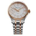 Мужские механические часы с ручным подзаводом — это аксессуар от легендарного бренда «МОЛНИЯ», созданный на Челябинском часовом заводе. Корпус диаметром 41 мм выполнен из нержавеющей стали 316L. БезельБезельВнешний ободок, закрепляющий стекло. В спортивных часах так называется поворотное кольцо с делениями на циферблате, выполняет роль таймера – замеряет отрезки времени на шкале. Неподвижный безель – элемент декора. Однонаправленно вращающийся безель на дайверских часах позволяет фиксировать моменты погружения и выныривания на поверхность. выполнен из стали с PVD-покрытиемPVDУльтратонкое покрытие наносится в технике вакуумного напыления, сочетает в себе нитрид титана особой прочности со слоем золота или оксида хрома. Несёт в себе декоративную или защитную функцию. и зеркальной отделкой. Циферблат белого цвета оформлен индексами и стрелками. Малая секундная стрелка вынесена на позицию 9 часов. Циферблат защищён сапфировым стекломСапфировое стеклоПрочный и надёжный материал из кристалла сапфира синтетического происхождения, характеризующийся особой твёрдостью и устойчивостью к царапинам и повреждениям. толщиной 2 мм. Механизм — мануфактурный калибр 3603, собранный вручную, с запасом хода до 40 часов. Прозрачная задняя крышка позволяет наблюдать за работой механизма. Часы оснащены стальным браслетом с частичным PVD-покрытиемPVDУльтратонкое покрытие наносится в технике вакуумного напыления, сочетает в себе нитрид титана особой прочности со слоем золота или оксида хрома. Несёт в себе декоративную или защитную функцию. под золото и системой быстрой замены на раскладной застёжкеРаскладная застёжкаТакой тип застёжки используется только на браслетах из металла. Она никогда не раскрывается полностью, происходит разделение на 2 и более частей. Раскладывающая застёжка снизит вероятность потери часов к минимуму. типа клипса. Водонепроницаемость 50 м позволяет использовать часы в повседневных условиях. Идеальный выбор для тех, кто ценит российское качество и традиции.